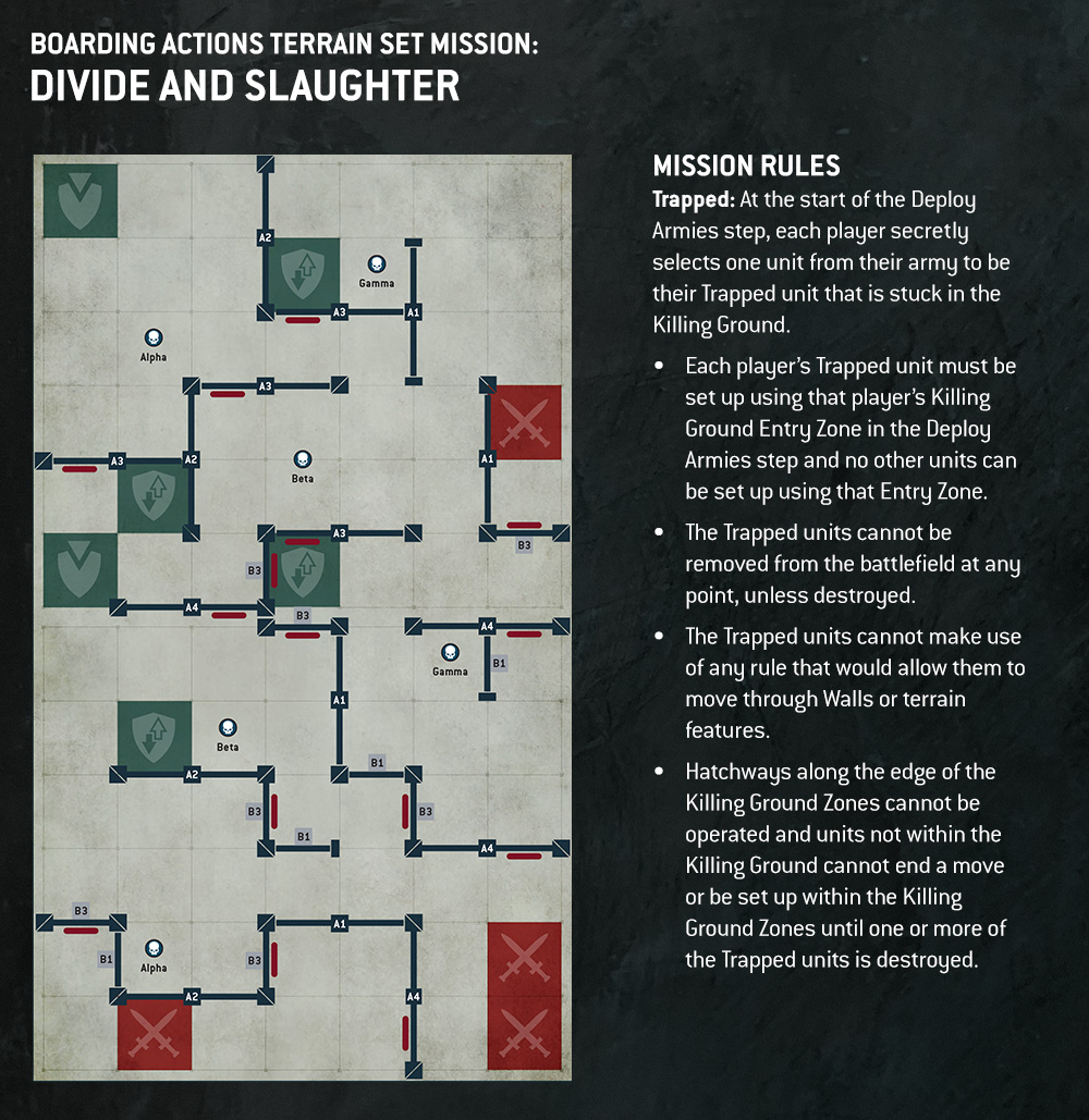 One clear highlight is Divide and Slaughter, a mission that traps a unit from each side inside a tiny chamber, sealing them in until one is destroyed. While a larger firefight rages outside, the entire game can hinge on this one brutal, unavoidable duel. It’s exactly the kind of rule that Boarding Actions thrives on — personal, violent, and cinematic.