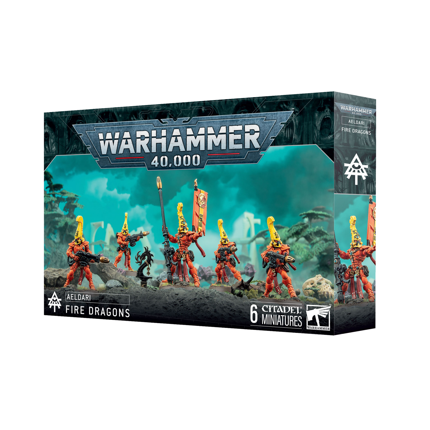 This multipart plastic kit builds five Fire Dragons – deadly flame-hurling warriors for use in Aeldari armies in games of Warhammer 40,000. These elite destructive troops can turn even the most heavily armoured battle tank into molten remains.