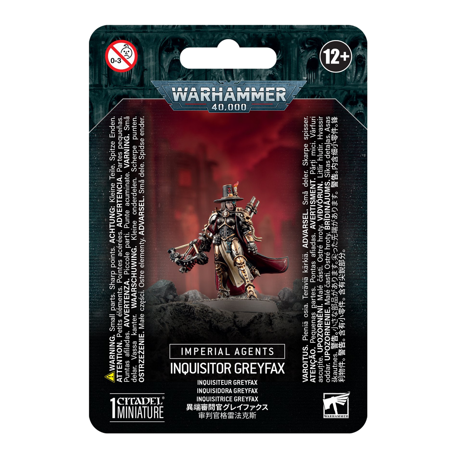 This multipart plastic kit builds Inquisitor Greyfax, a high-ranking Agent of the Imperium from the Ordo Hereticus. This incredibly imposing figure is clad head to toe in ornate power armour, and carries a master-crafted condemnor boltgun with which she fires sanctified silver stakes into the hearts of heretics. Her psyocculum eyepiece allows her to detect the work of witches, wherever they try to hide.