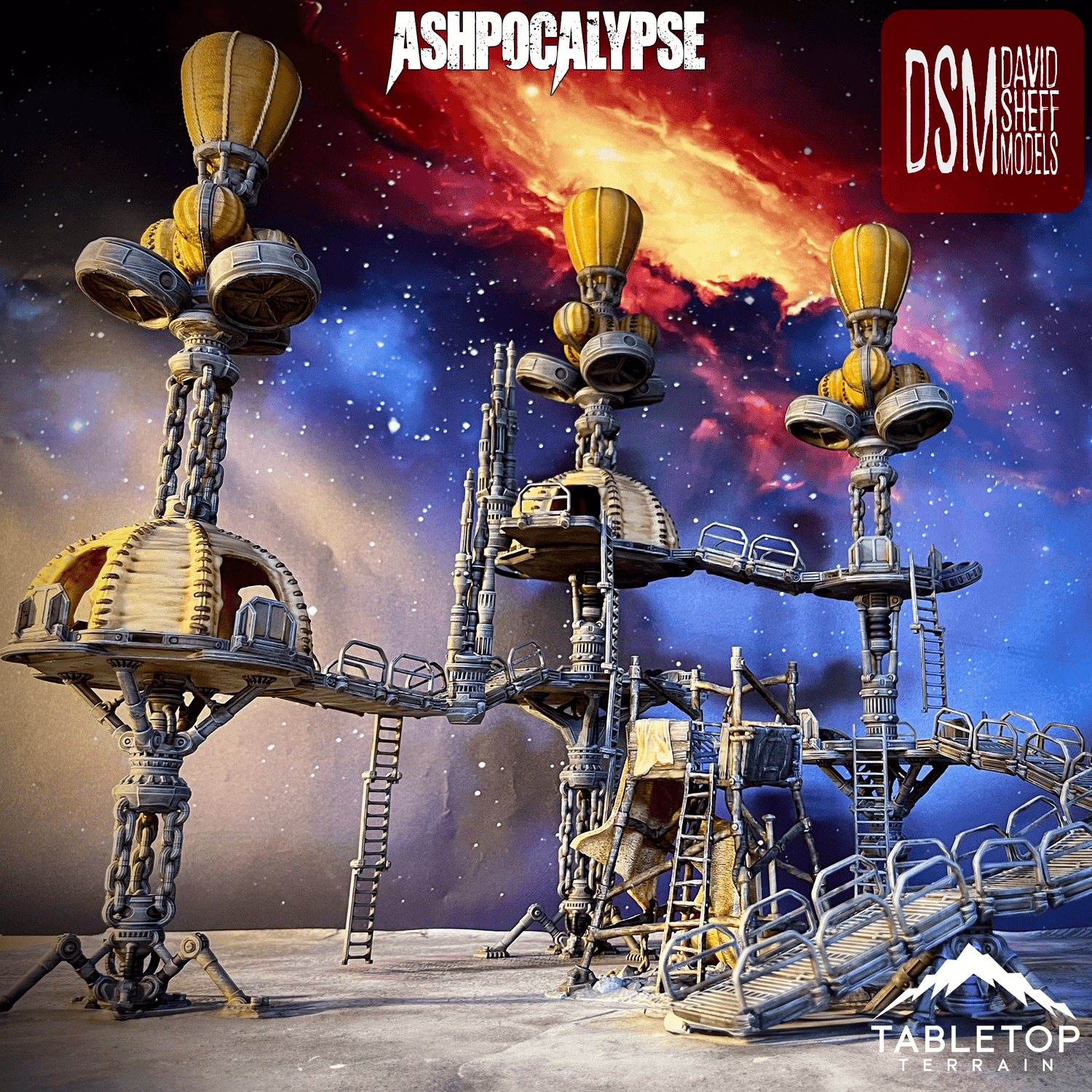The Ashpocalypse Set is pitched to work with a lot of different scales, from 28mm to 40mm scale games (with each levels at 88mm, the same as the core set terrain from the Shatterpoint set). It can be built without the floatation devices to make a more conventional platform set, which also has compatibility with other terrain sets on the market at the moment.