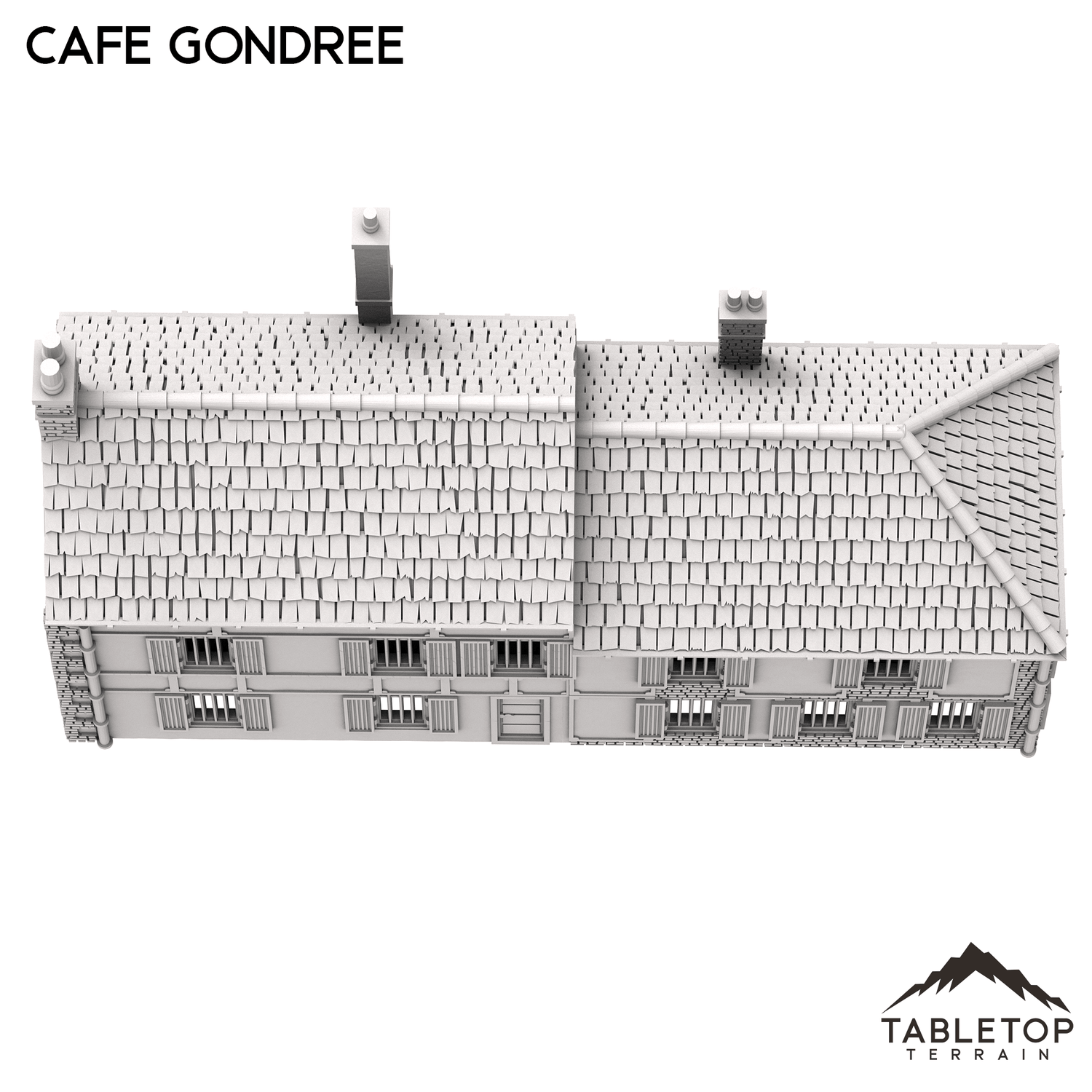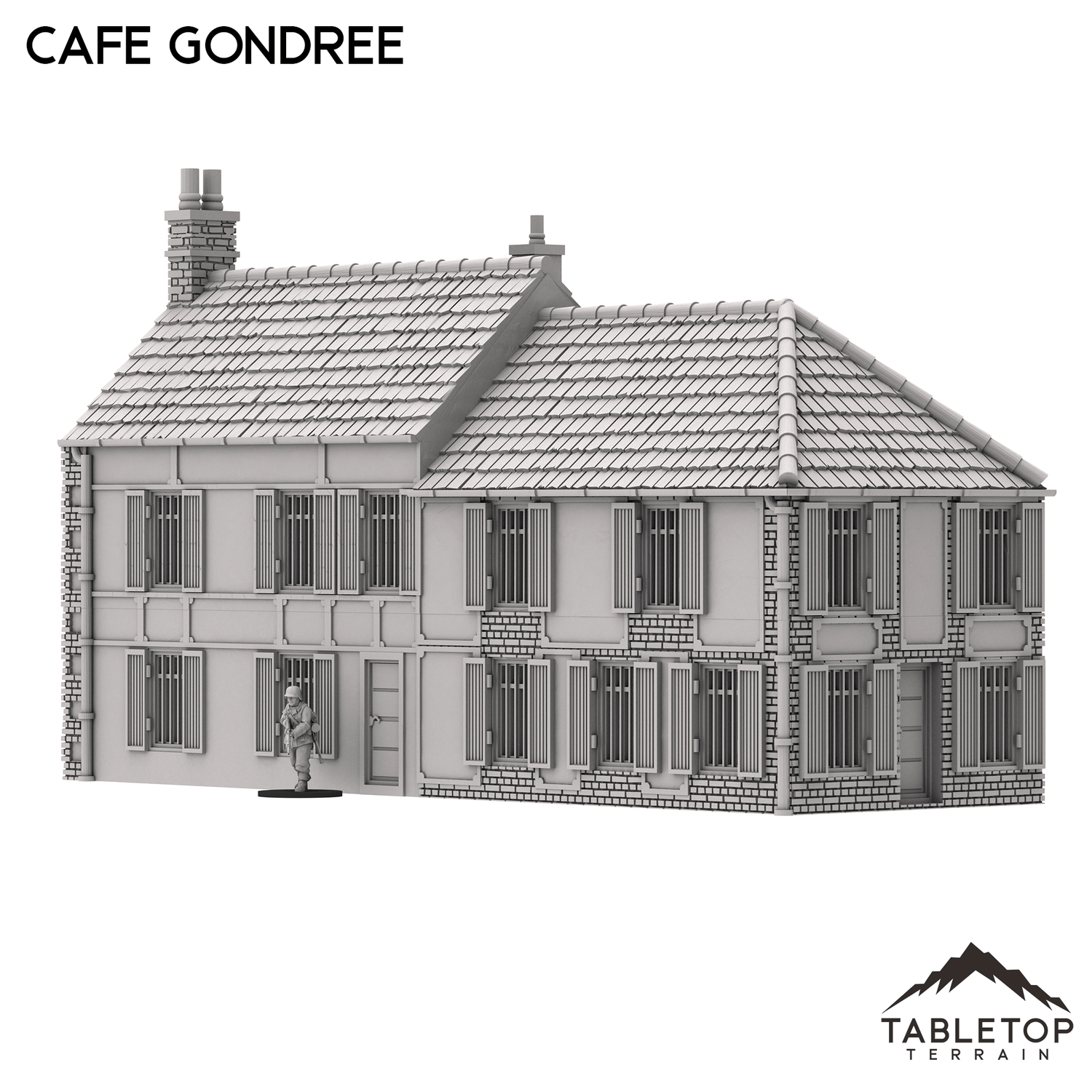 The Cafe Gondrée Benouville set is a model of the famous two-story red brick building that was built at the end of the 19th century. Its exterior features high levels of detailing, while the inside is made to house a large number of minis. The community of Benouville was the site of the first combat of D-Day and holds historical importance even now. This set has room inside for a collection of minis, and is perfect for any tabletop.