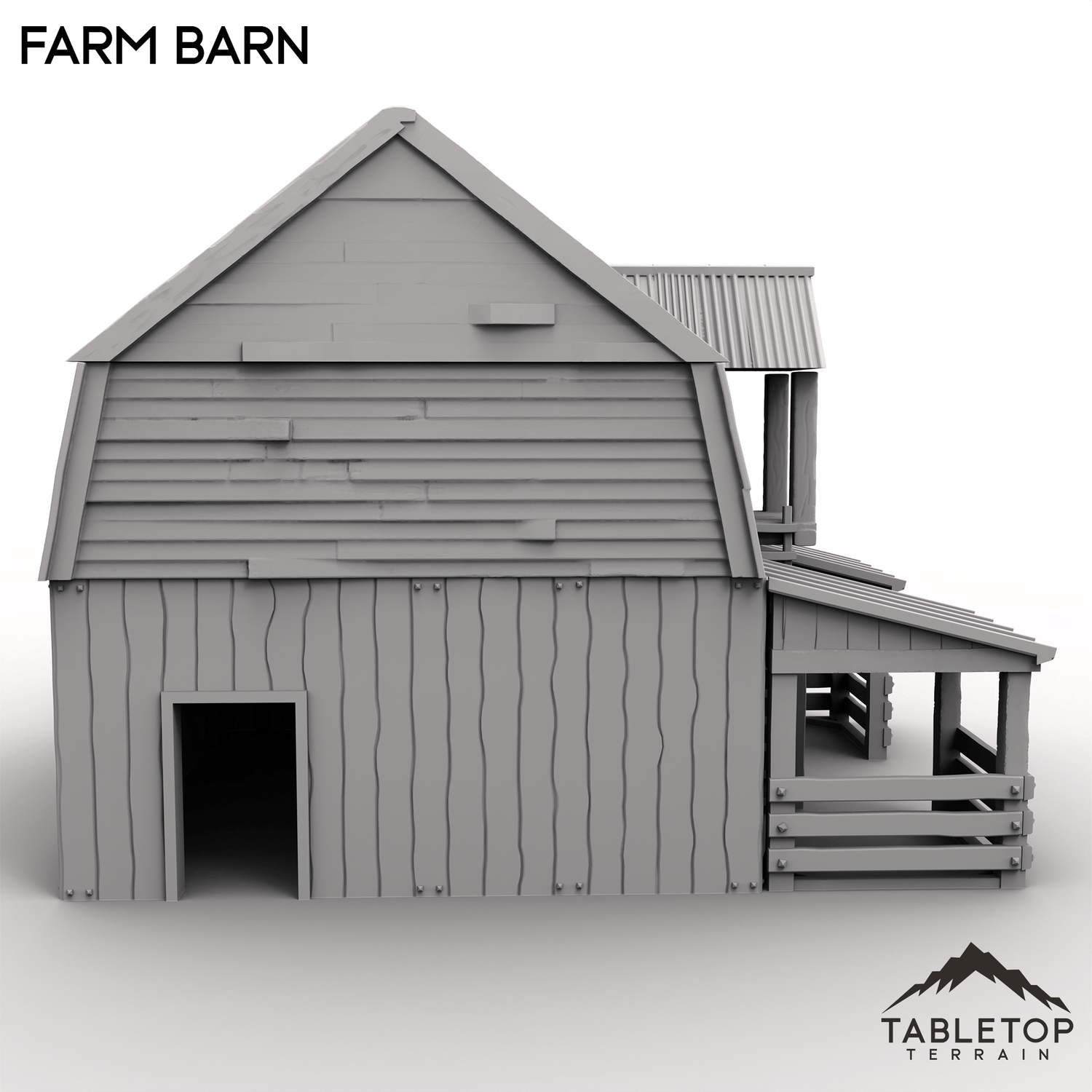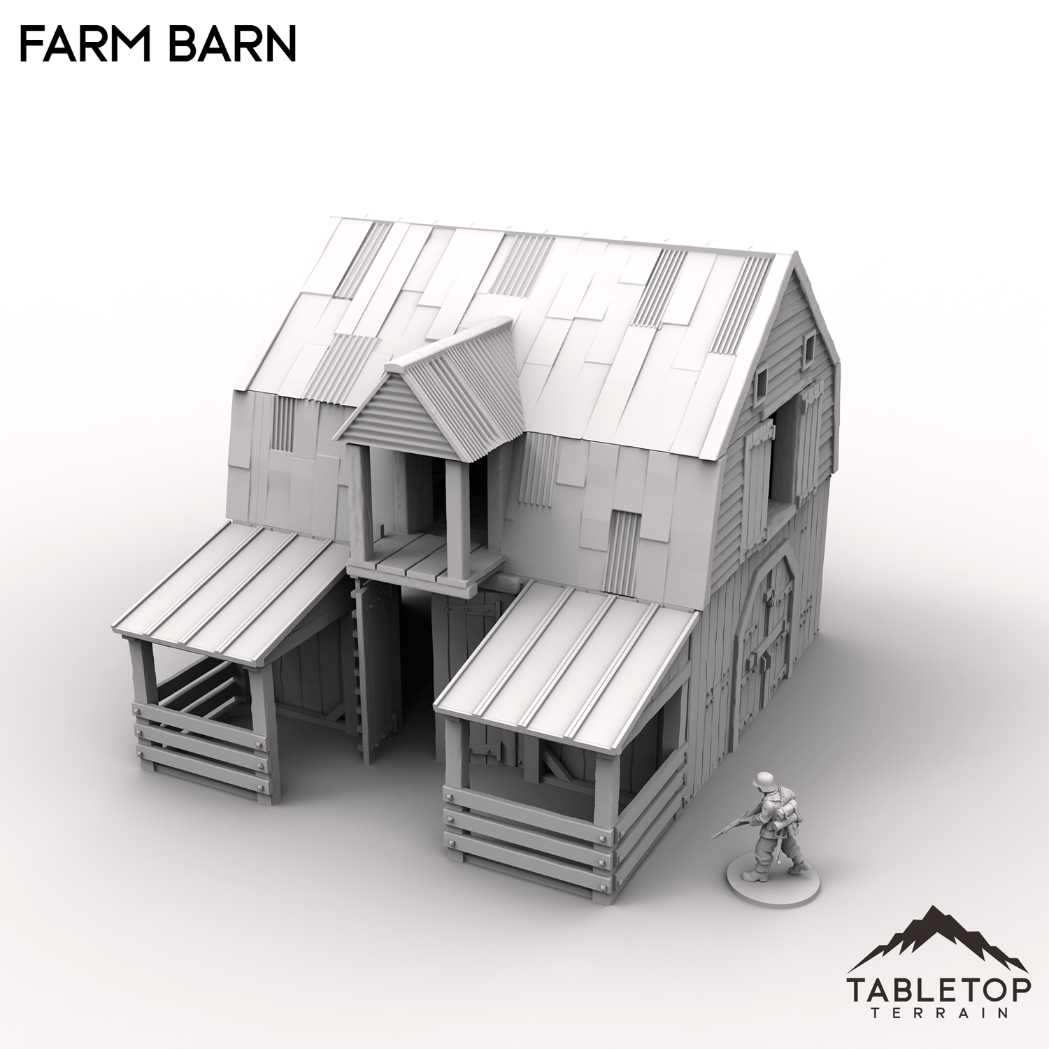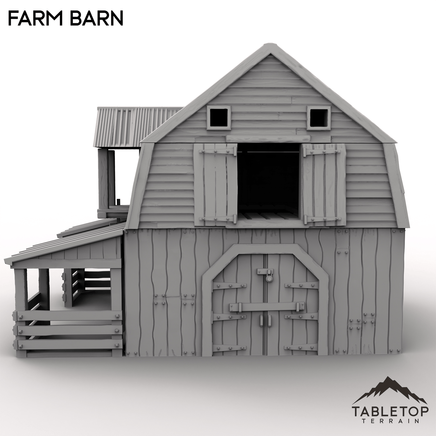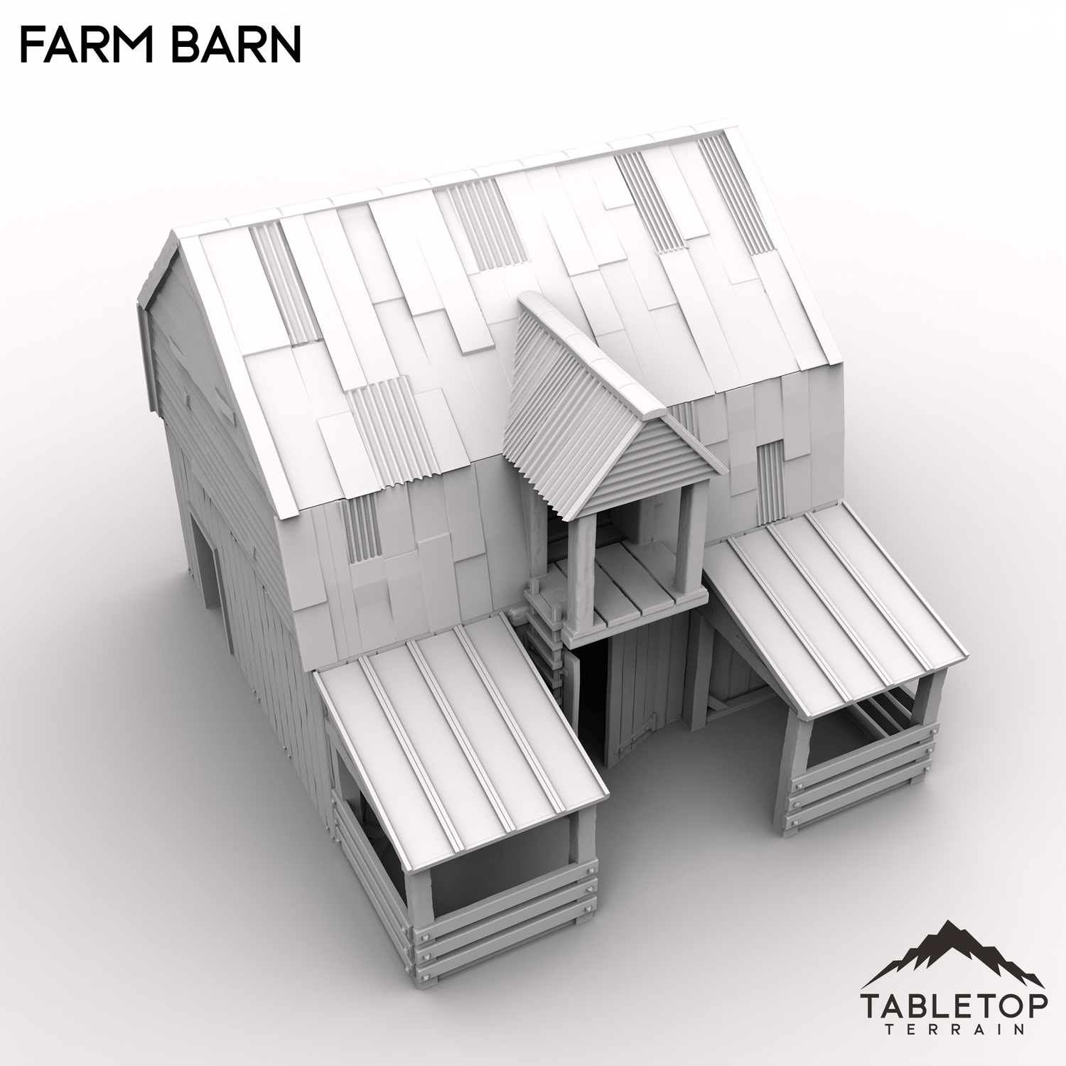 Bring rustic charm to your tabletop adventures with this Farm Barn. Perfect for pastoral settings, it features detailed siding, spacious overhangs, and a classic barn loft. Whether you're hosting a gathering of settlers, hiding a secret smuggler's cache, or staging a countryside battle, this versatile piece fits seamlessly into any scenario.