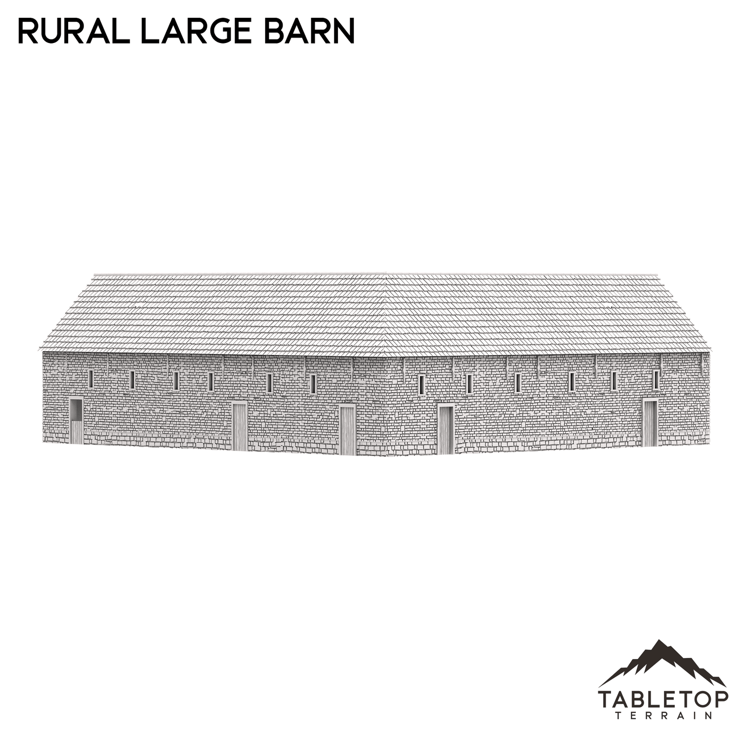 The Rural Barn is a 1-story open-interior budling made to mimic the look of a classic French garage. The entire exterior is highly detailed and stylized, and the interior is able to hold a large number of minis. The set comes in multiple pieces for easy painting or storage.