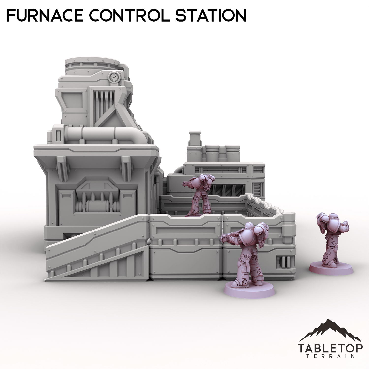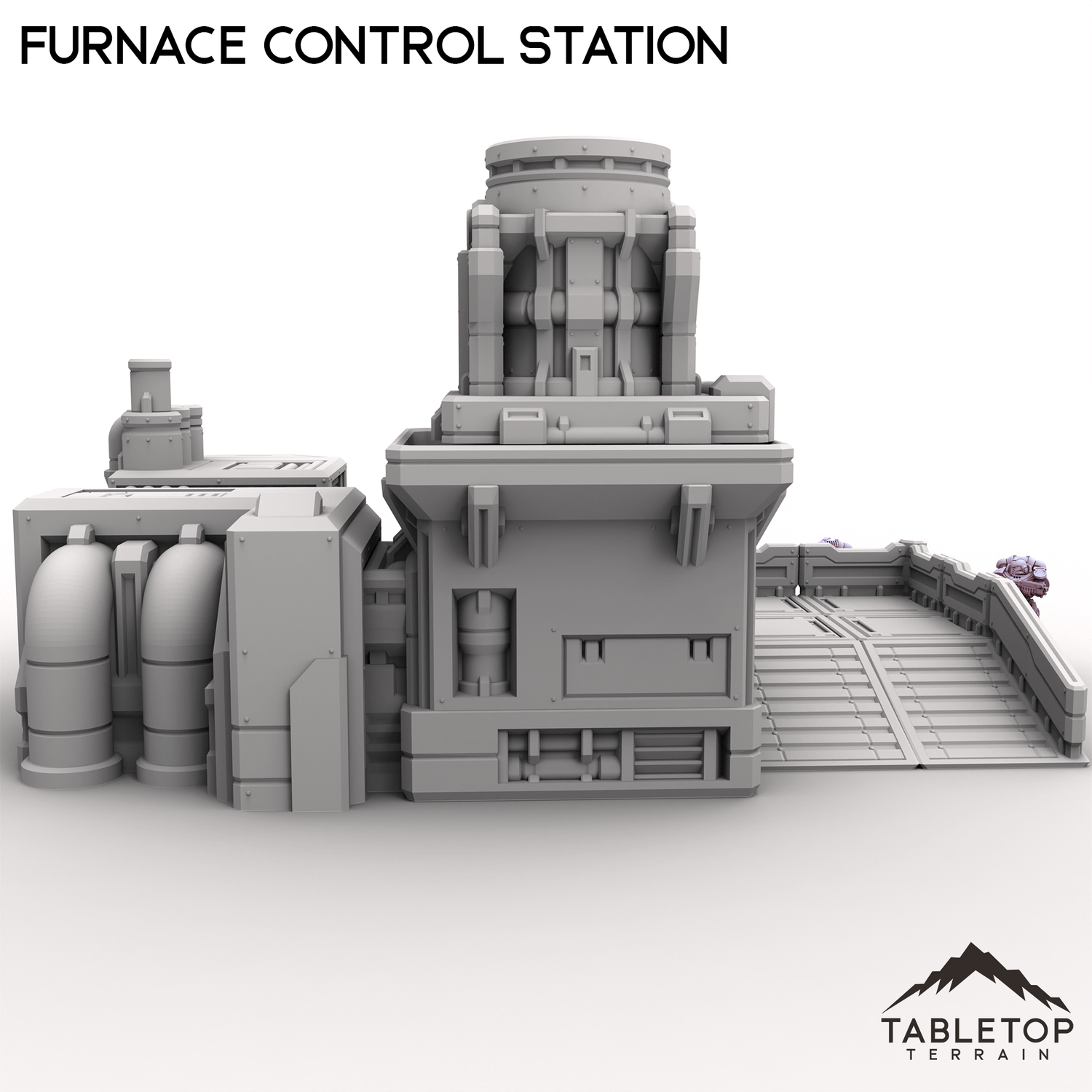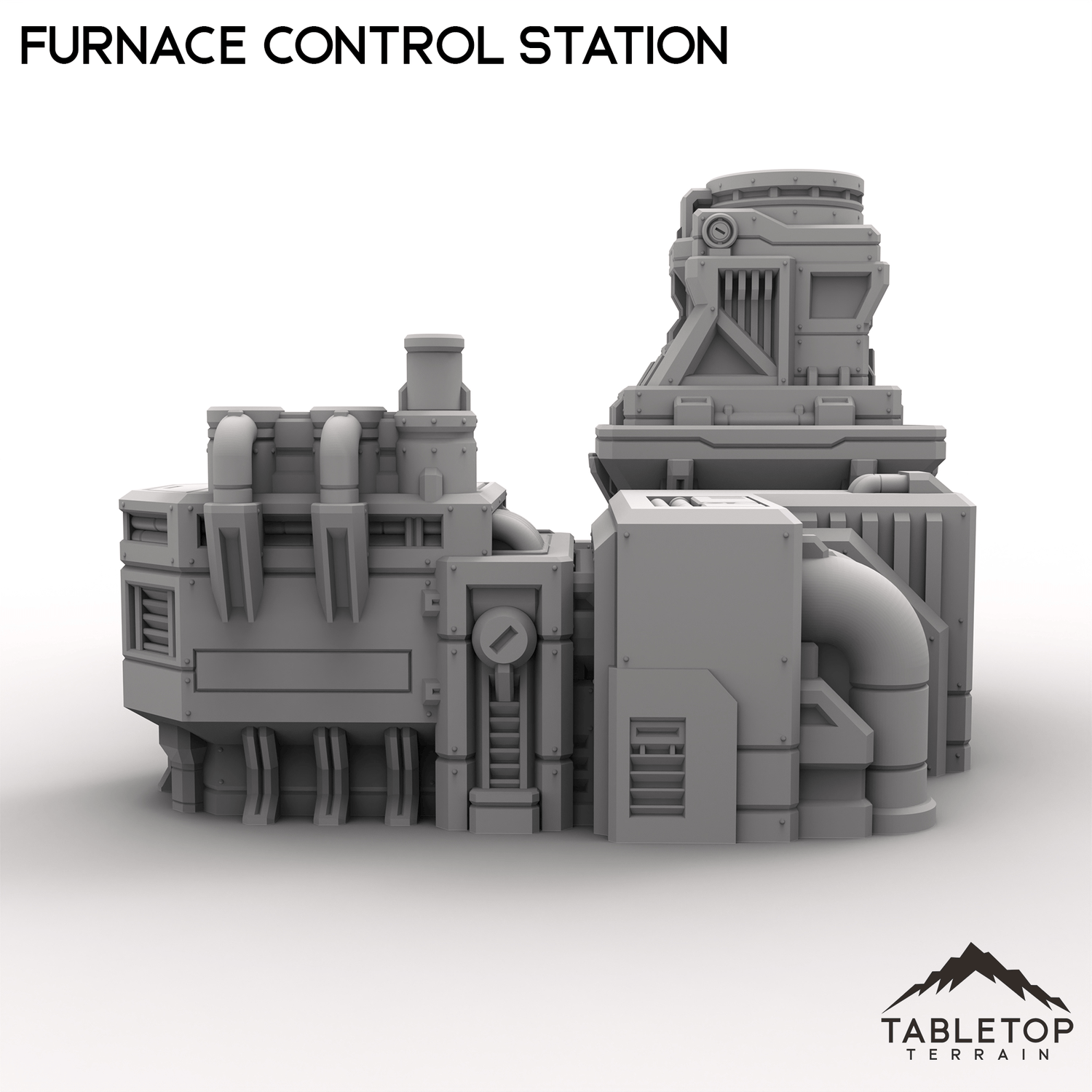 This Furnace Control Station features a raised observation platform and a towering exhaust vent. Designed for managing intense industrial heat and volatile systems, it fits seamlessly into forge complexes, smelting facilities, or hazardous work zones. The elevated platform offers a natural vantage point or staging location for troops seeking to breech the interior.