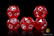 This single red challenge die is perfect for expanding your current set. Our dice are hand swirled, machine polished, and laser engraved; they are balanced luxury dice.