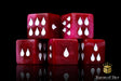 These contain a chiseled sinew and hewn muscle reds swirled to create the perfect wound counter dice and inlaid with a bright white resin 16mm dice. Keep track of wound taken by placing the die next to each model that takes damage. Which model has been damaged? Easy! The one with blood drop arrows pointing to the model!