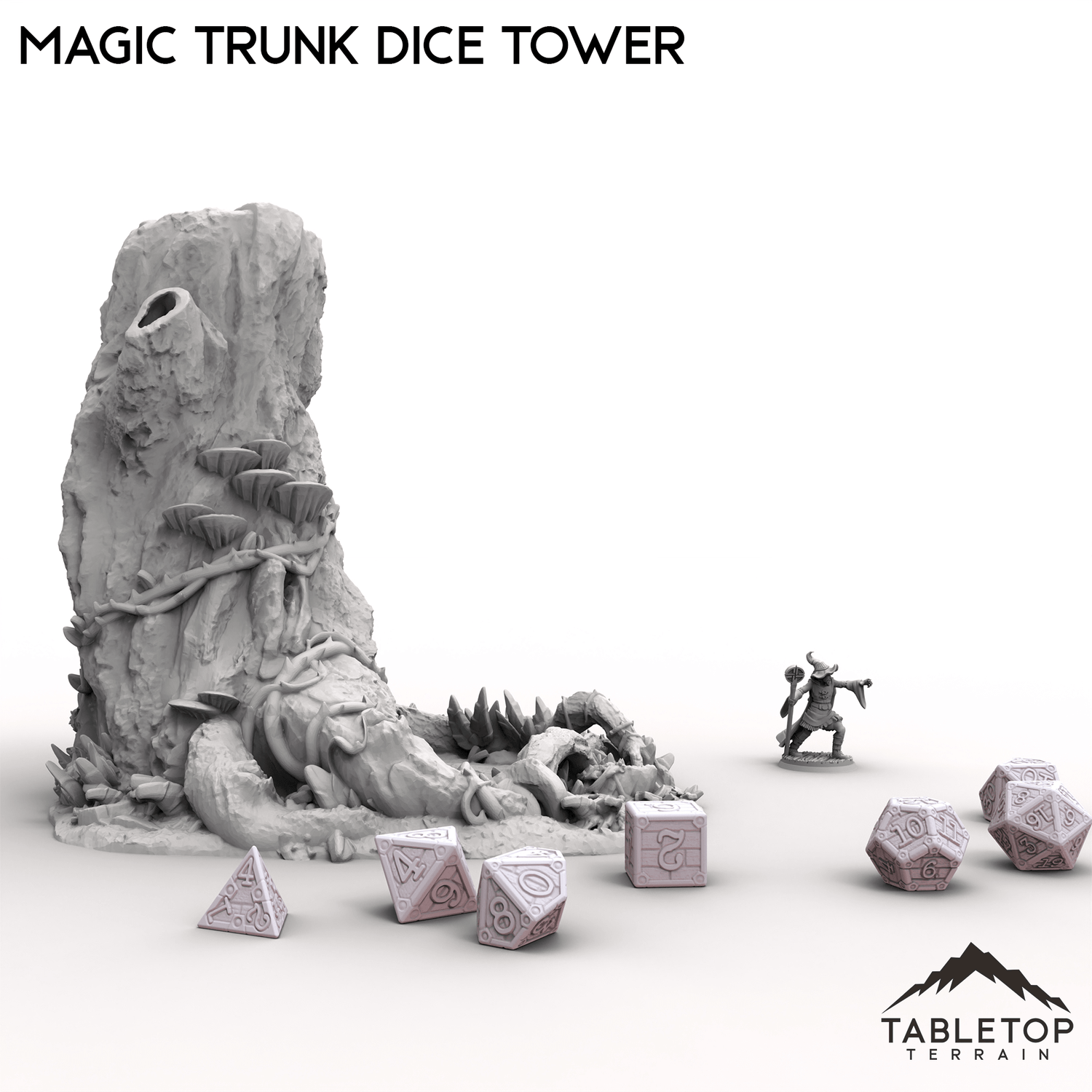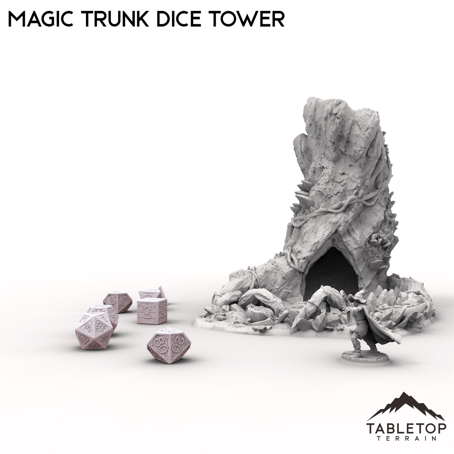 This Magic Trunk Dice Tower blends nature and mysticism into one. Drop the dice in at the top, and they rattle through the hollowed-out core before rolling out of the roots below. Perfect for adding a touch of enchantment to your game.