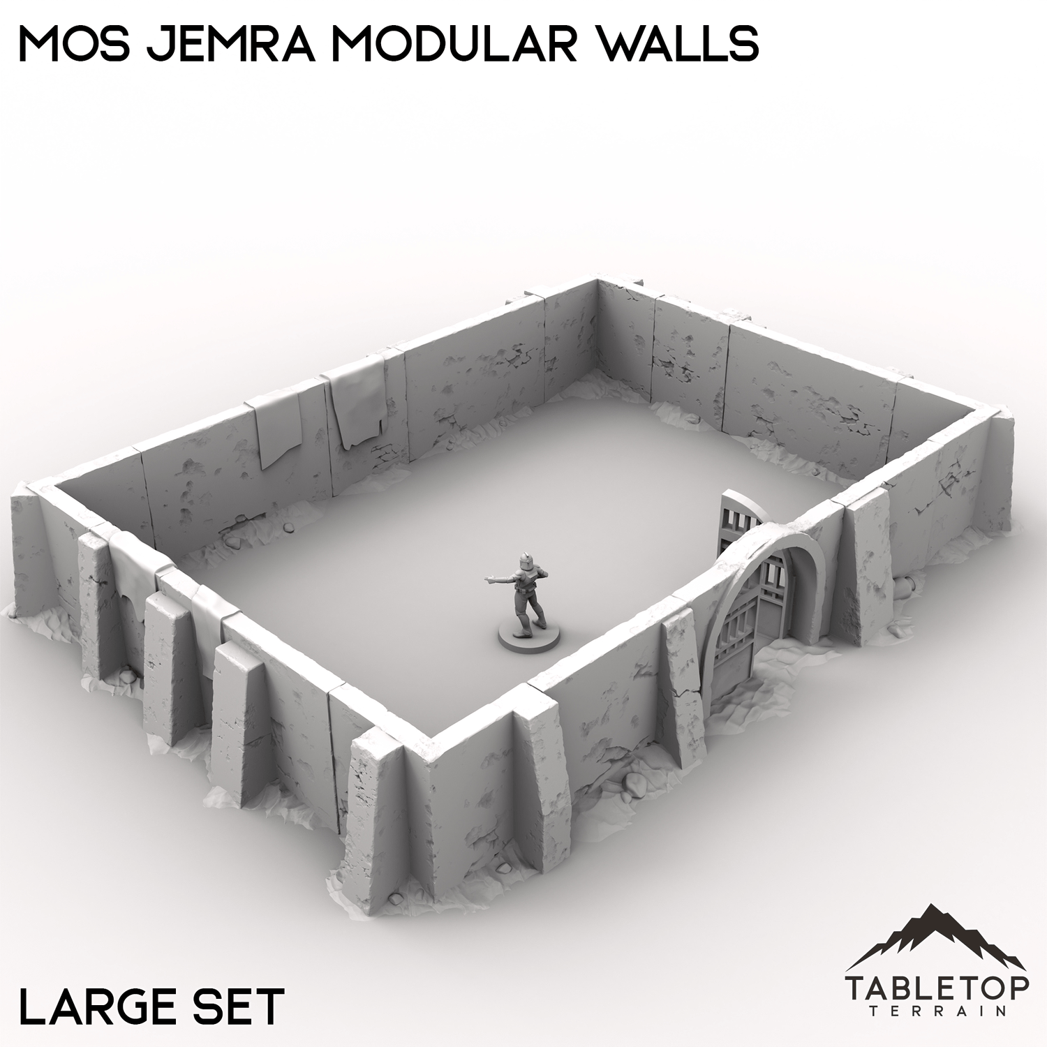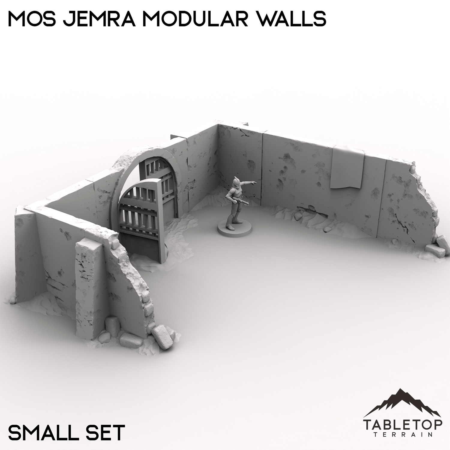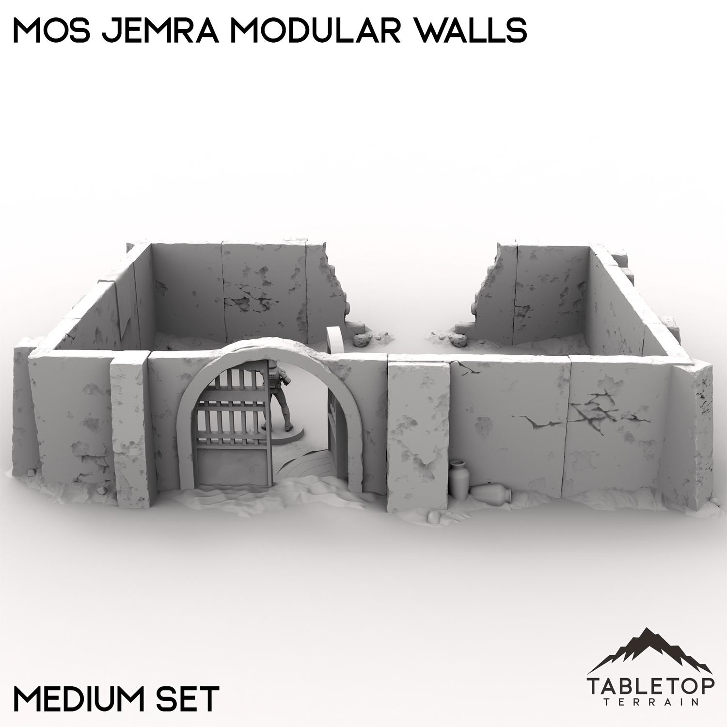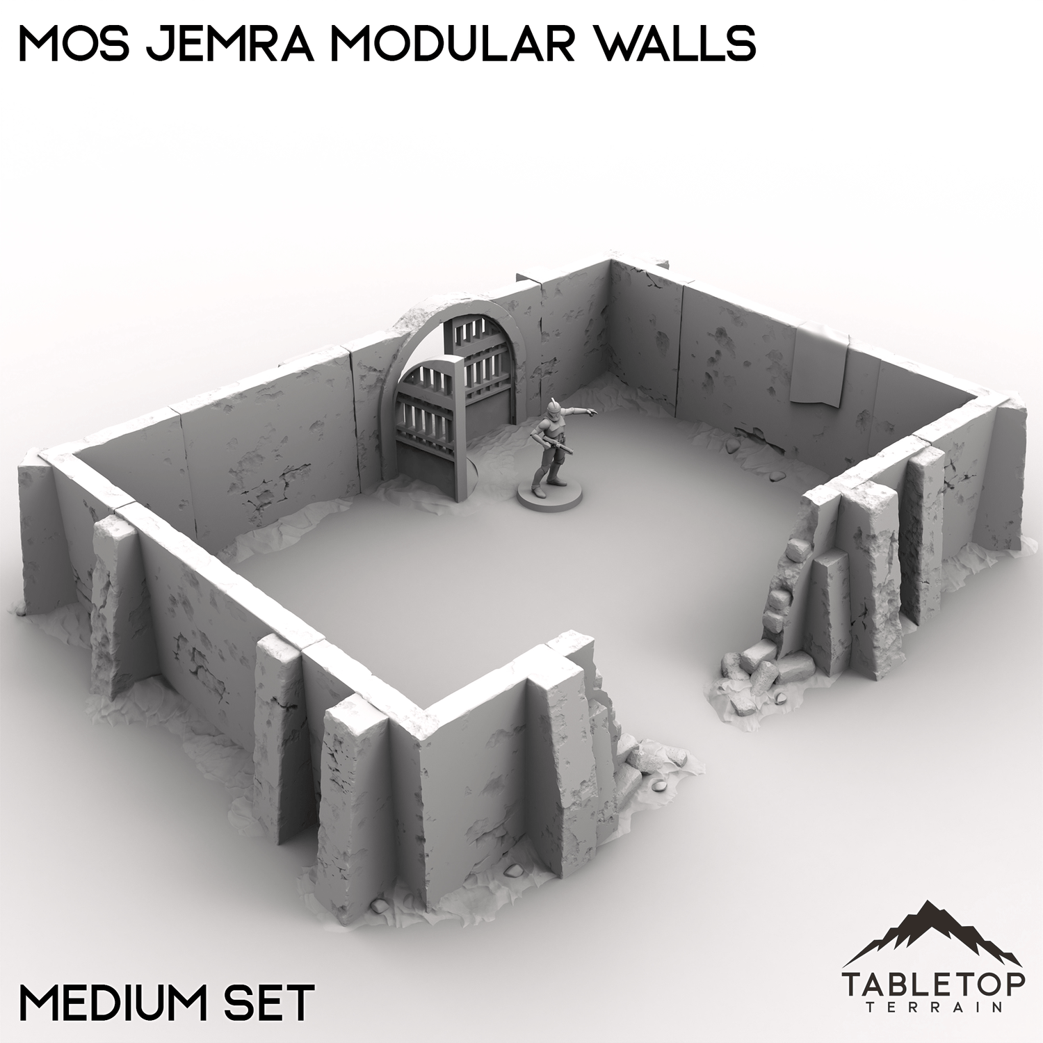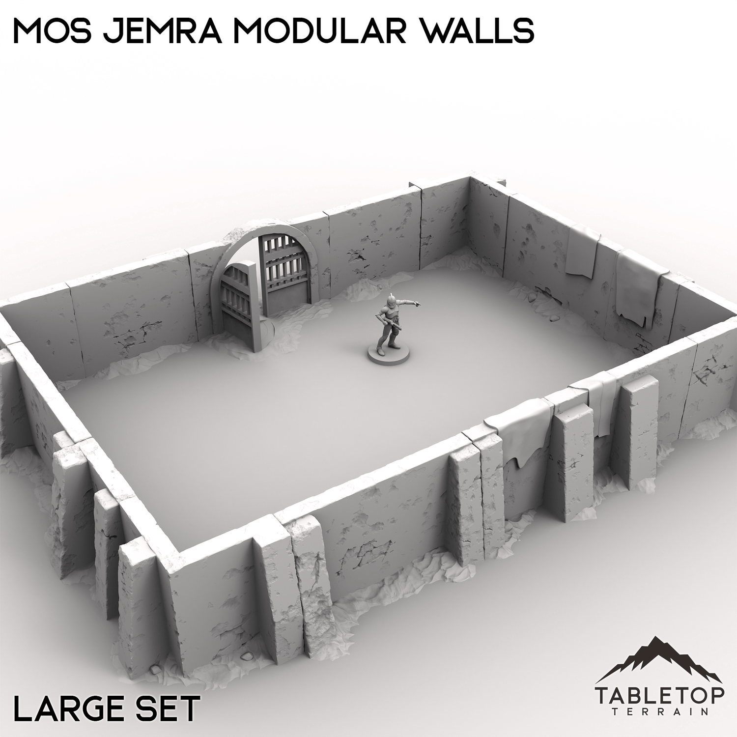 The Mos Jerma Modular Walls form a versatile perimeter, their sturdy construction offering solid defense against enemies. Some sections remain intact, standing firm against the elements, while others bear the scars of battle, with gaping breaks and crumbled edges providing makeshift entry points. These walls thematically fit with the rest of Mos Jemra collection!