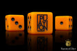 Featuring a base of heroic [NOT touched by Steve] matte orange and inlaid in a charcoal grey; resin 16mm dice. The symbols are on the 6 side. Our premium dice come in a unique reusable tin.
