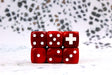 These are hand mixed resin dice, combining two noble reds swirled with an honorable crisp white inlay; resin 16mm rounded edge dice.  The symbols are on the 6 side.  Our premium dice come in unique reusable metal tins when purchased in x25 or x50 counts.