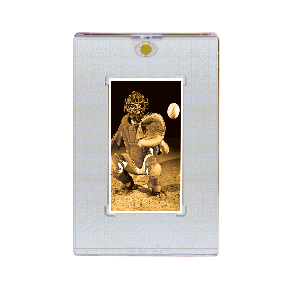 Ultra PRO's Tobacco ONE-TOUCH holders are premium trading card storage cases designed as the final destination for your collectible tobacco card size trading cards. The two-piece ONE-TOUCH holders are uniquely designed with slide-in hinges and magnetic closure so you'll never have to use a screwdriver again. The holder uses UV-blocking additives to protect your card from harmful UV rays and is made with non-PVC materials to provide acid-free protection - ensuring your valuable hit retains its condition while under the display. This model can hold Tobacco Size Cards up to 35pt in thickness.