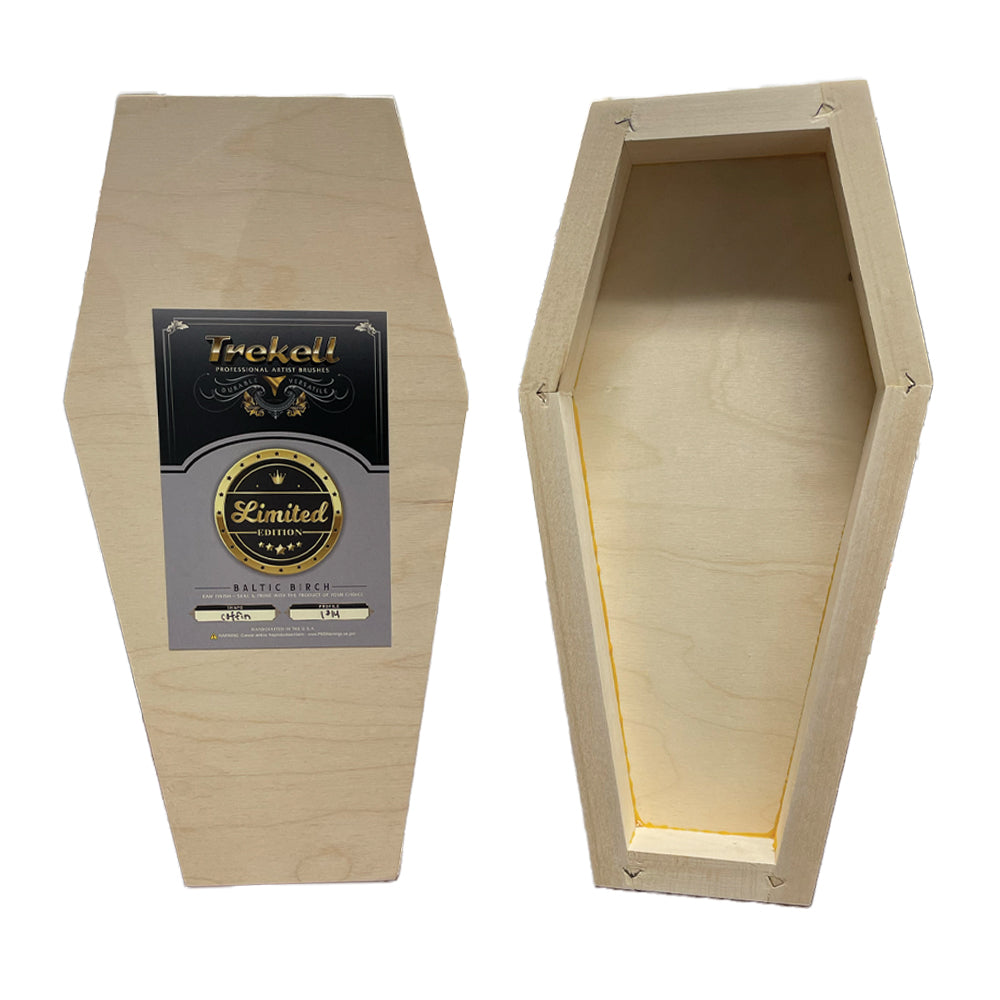 Introducing our Coffin Cradled Panel, the ultimate canvas for your dark and dramatic works of art. This 7" x 14" panel, 1 3/4" profile, is crafted from the highest quality Baltic Birch, with a sturdy basswood cradle that guards against warping. This unique coffin shape adds a touch of macabre to your art collection and will make your artwork stand out in any setting. Perfect for gothic, horror, or fantasy-themed pieces, this Coffin Cradled Panel is a must-have for any artist looking to add a bit of dark charm to their portfolio.