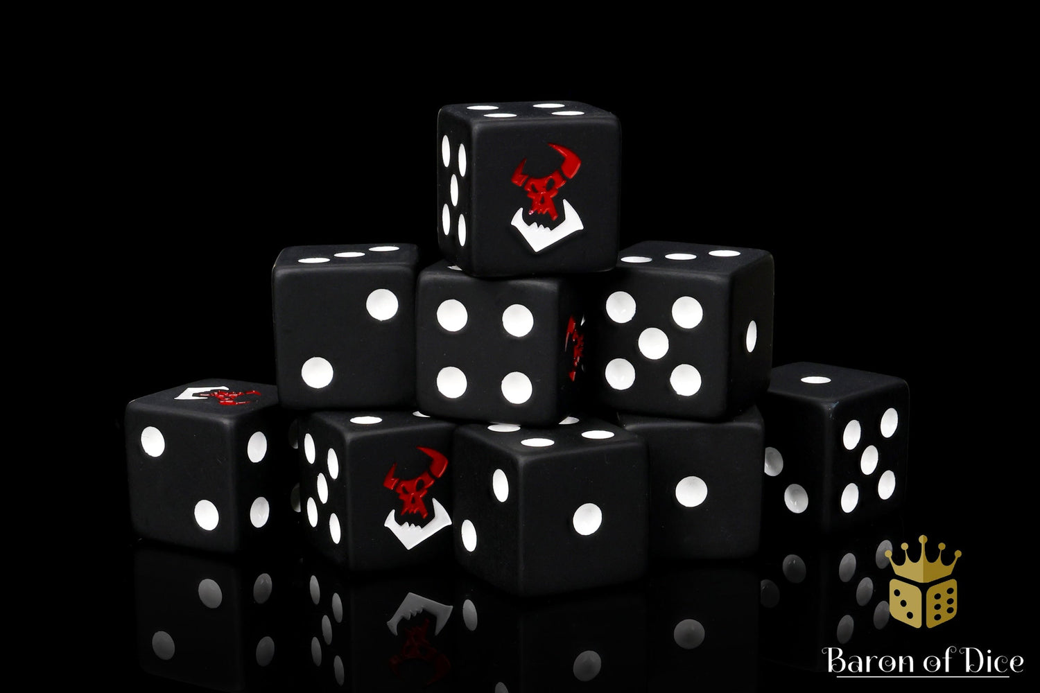 These are a Baron of Dice Original. They are in no way affiliated with Games Workshop, Mantic Games, Kings of War, or any other brand. All designs are on BaronOfDice.com!