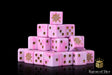 These contain a base of sinewy muscle hues swirled with flayed flesh pinks and inlaid in a metallic gold; resin 16mm dice. The symbols are on the 6 side. These dice have an option of round corner or square corner; choose wisely! Our premium dice now come in a unique reusable tin.