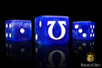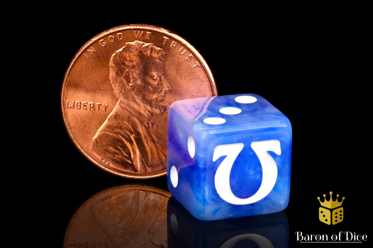 These contain a blend of regal, deep, and righteous blues swirled with heroic white swirl and inlaid with crisp white; resin hand-swirled dice. The symbols are on the 6 side. These dice have an option of round corner, square corner, and 12mm MINI dice; choose wisely! Our premium dice now come in a unique reusable tin.