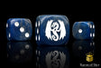 These contain a mix of rolling thundercloud greys swirled with deep threatening blues and inlaid with a bright white (round corner) or true silver (square corner); resin 16mm dice. The symbols are on the 6 side. These dice have an option of round or square corner, choose wisely! Our premium dice now come in a unique reusable tin.