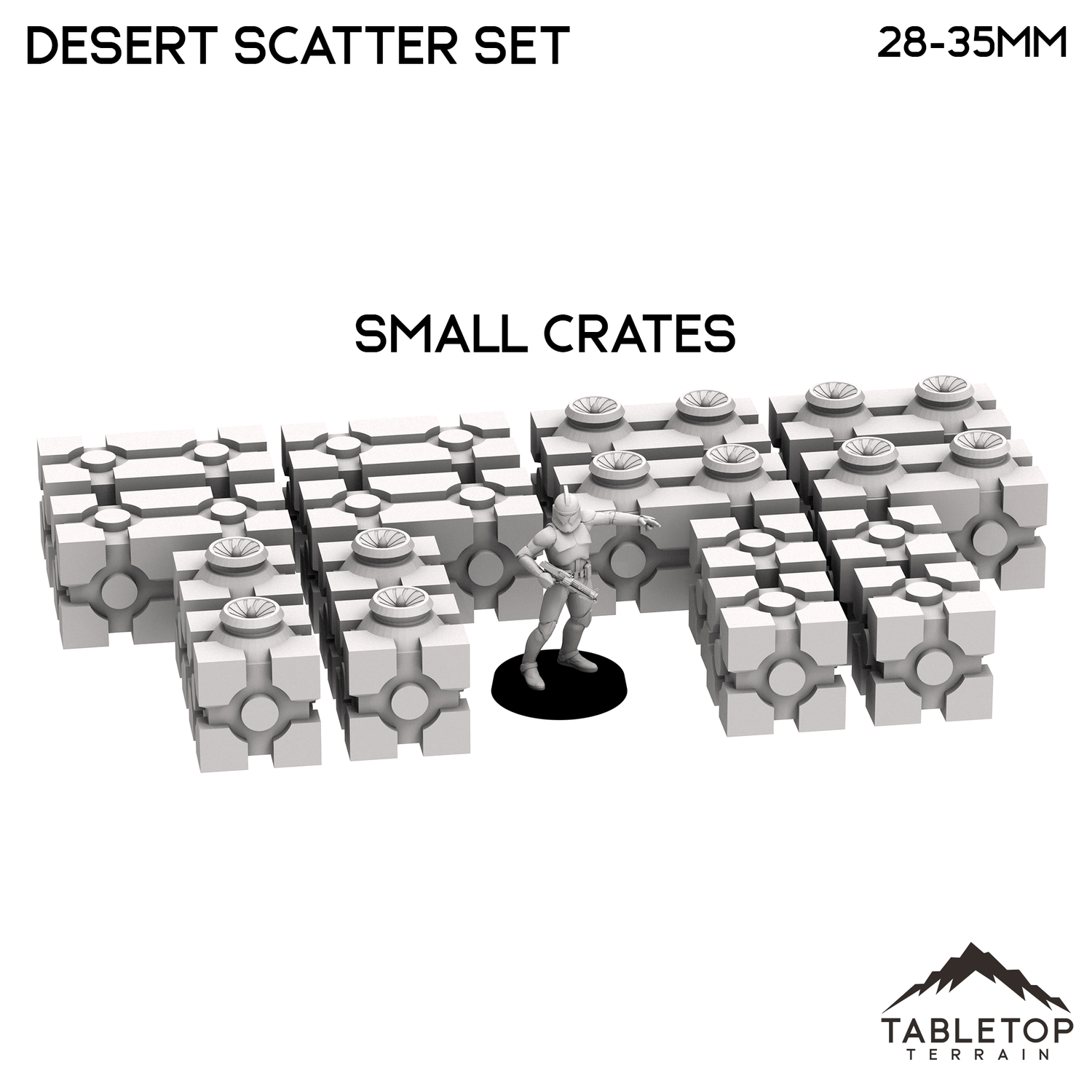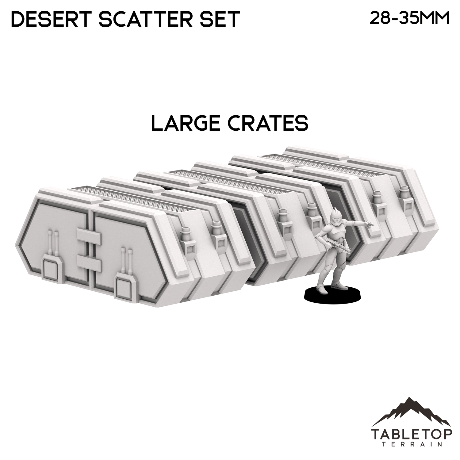 1 Desert Scatter Set: 3 large crates, 16 small crates, supply towers including fuel storage, shield generator, two power generators.