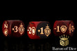 Elevate your gaming experience with the Baron Dice Defense Dice, allowing the purchase of single defense dice. Each single defense die is a matte bloody red swirled with pure black veins and inlaid with a cream white.