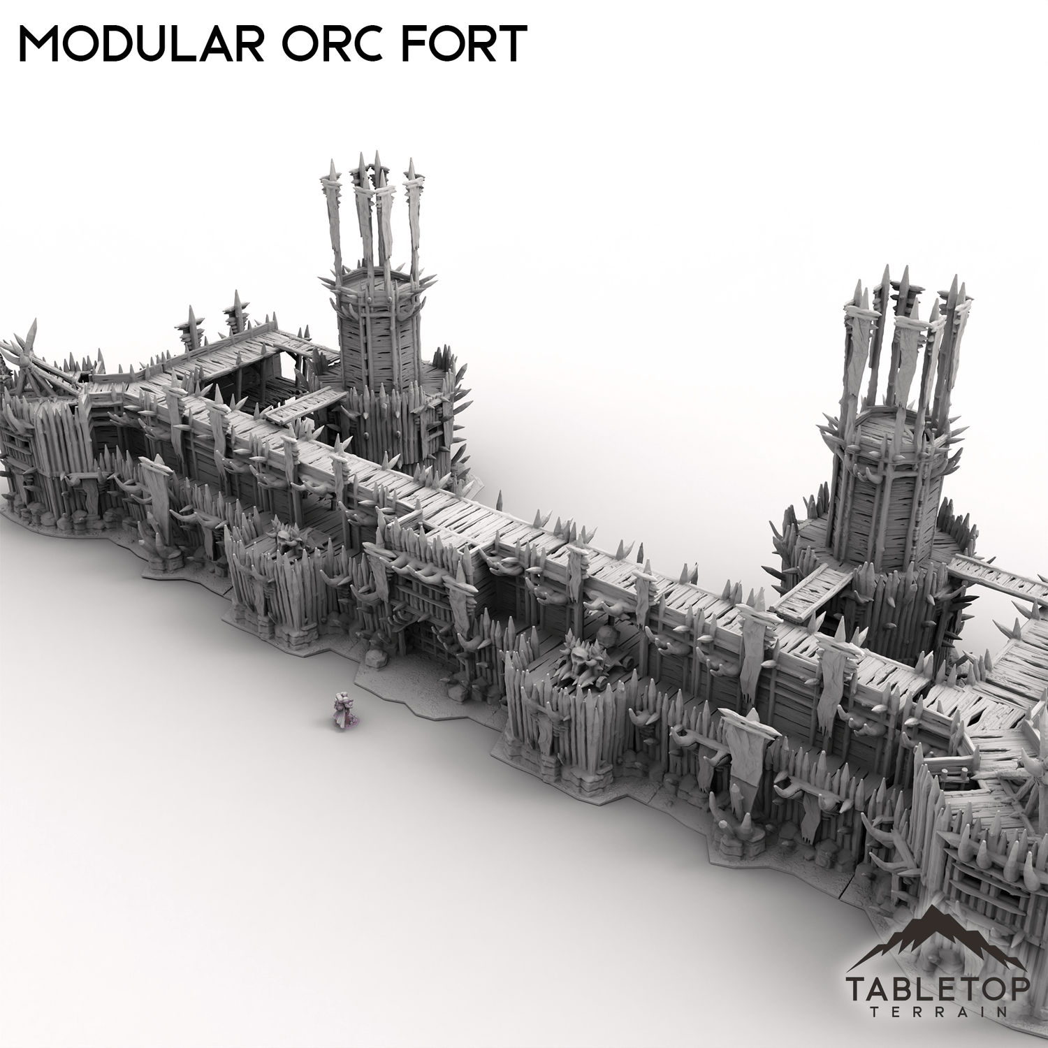 This huge Modular Orc Fort is a brutal stronghold of jagged timber walls and spiked towers. Crude platforms line the battlements, giving orc archers high ground to strike from. Catapults and war machines are built into its defenses, making the fort a deadly war camp as well as a fortress. Its modular design lets you rearrange the pieces to create new layouts as you please