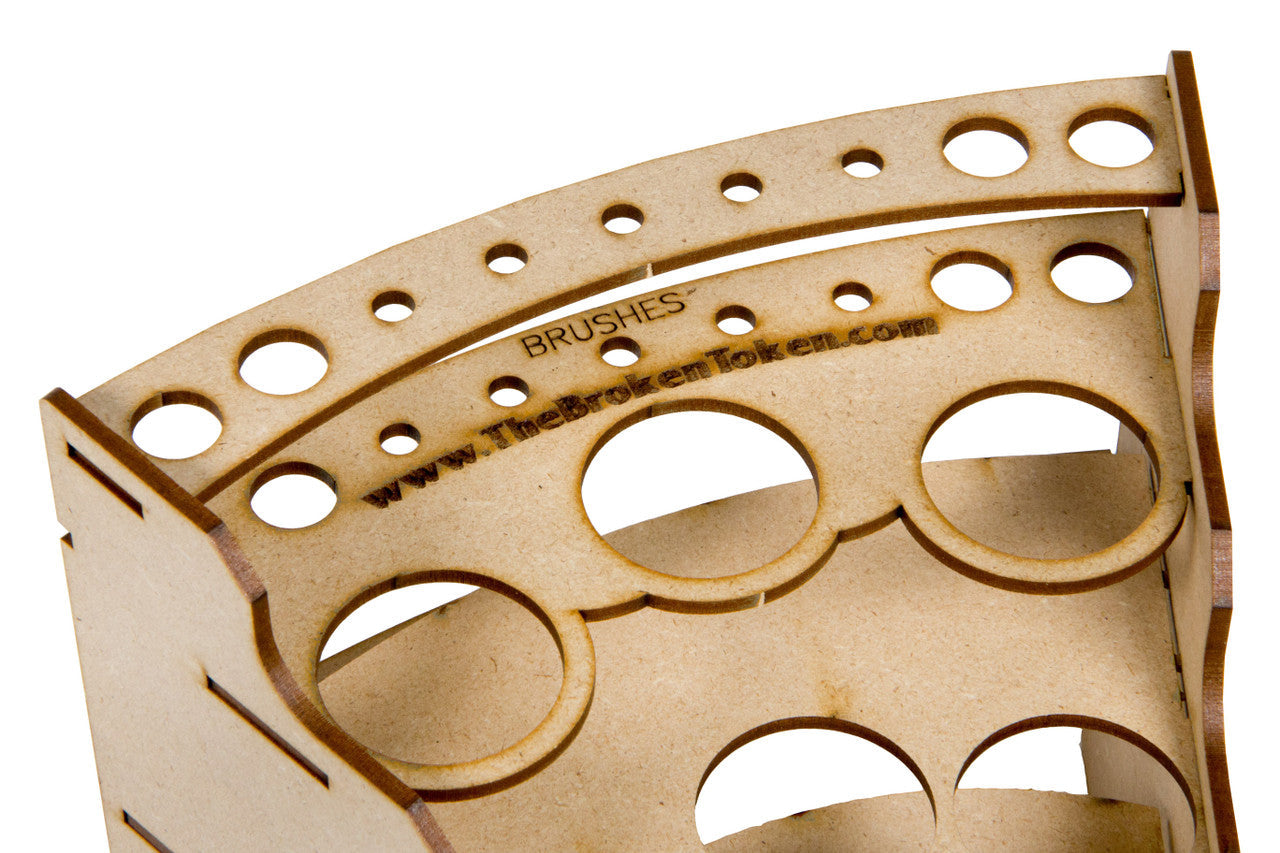 Your miniatures may be works of art, but a disorganized desk certainly isn't. Get your paints and brushes in line with our Modular Paint Rack system! These MDF racks hold your paint pots, bottles and brushes in a tiered layout for easy organization and access when customizing your game pieces. Multiple racks can be combined into a larger system using the included clips!