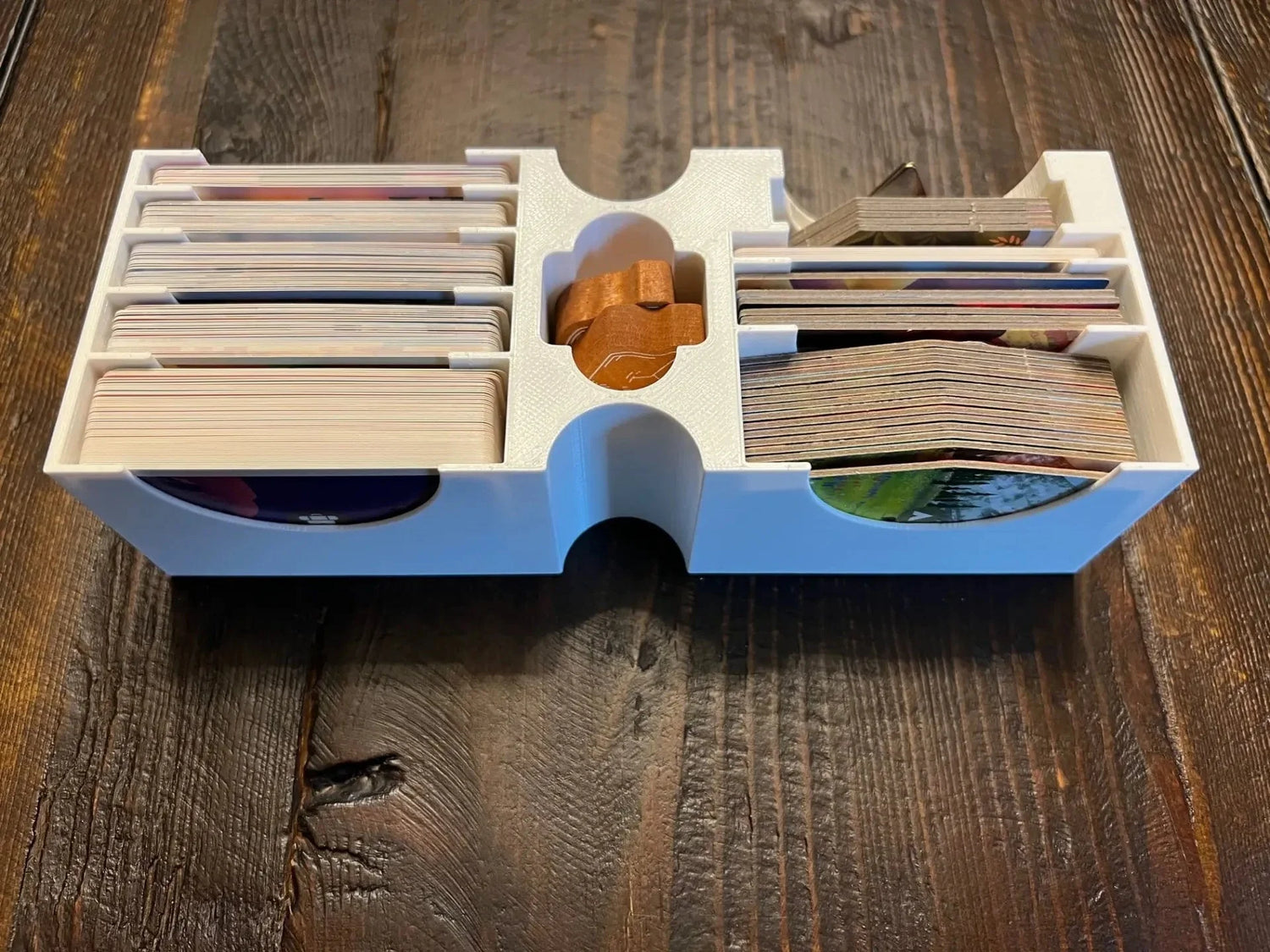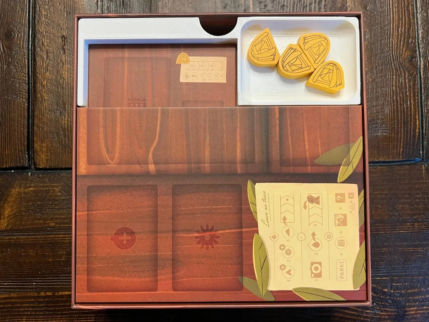 *  A tray with labels for all of the small cards, trail sites, campsites, campfire tokens, and the first player token.  There is also a slot for the bison and the promo bear.