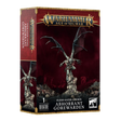This multipart plastic kit builds an Abhorrant Gorewarden, a vampiric margrave from the Flesh-eater Courts. This terrifying gargoyle rides the winds of Shyish on bat-like wings, leaping from its crumbling perch to soar across the battlefield and seek out prey. Its monstrous form is adorned with a grisly parody of courtly regalia, and it clutches a set of keys in its razor-sharp talons – a symbol of its royal duty.