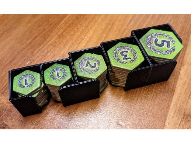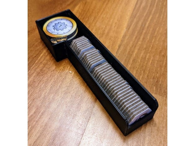 This is an organizer for the boardgame Corrosion. It supports sleeved card and vertical storage. Most of the boxes can be used during the game which makes setup really quick.