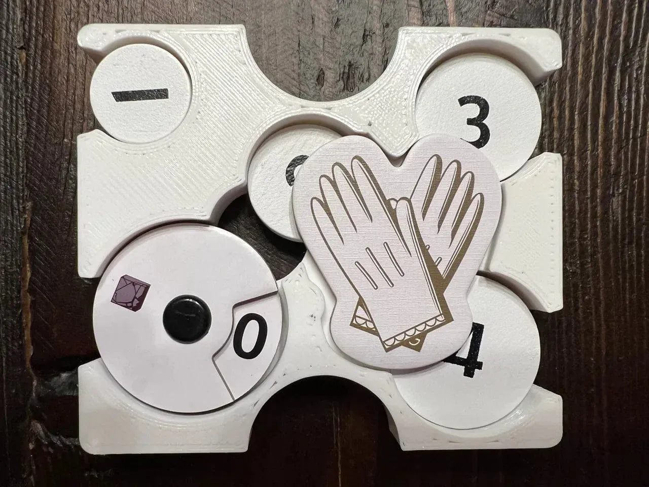 Setup tray that holds the round tracker, first player token, personal manager token for use with the capitalist who requires it, die, and neutral-color capital disc.