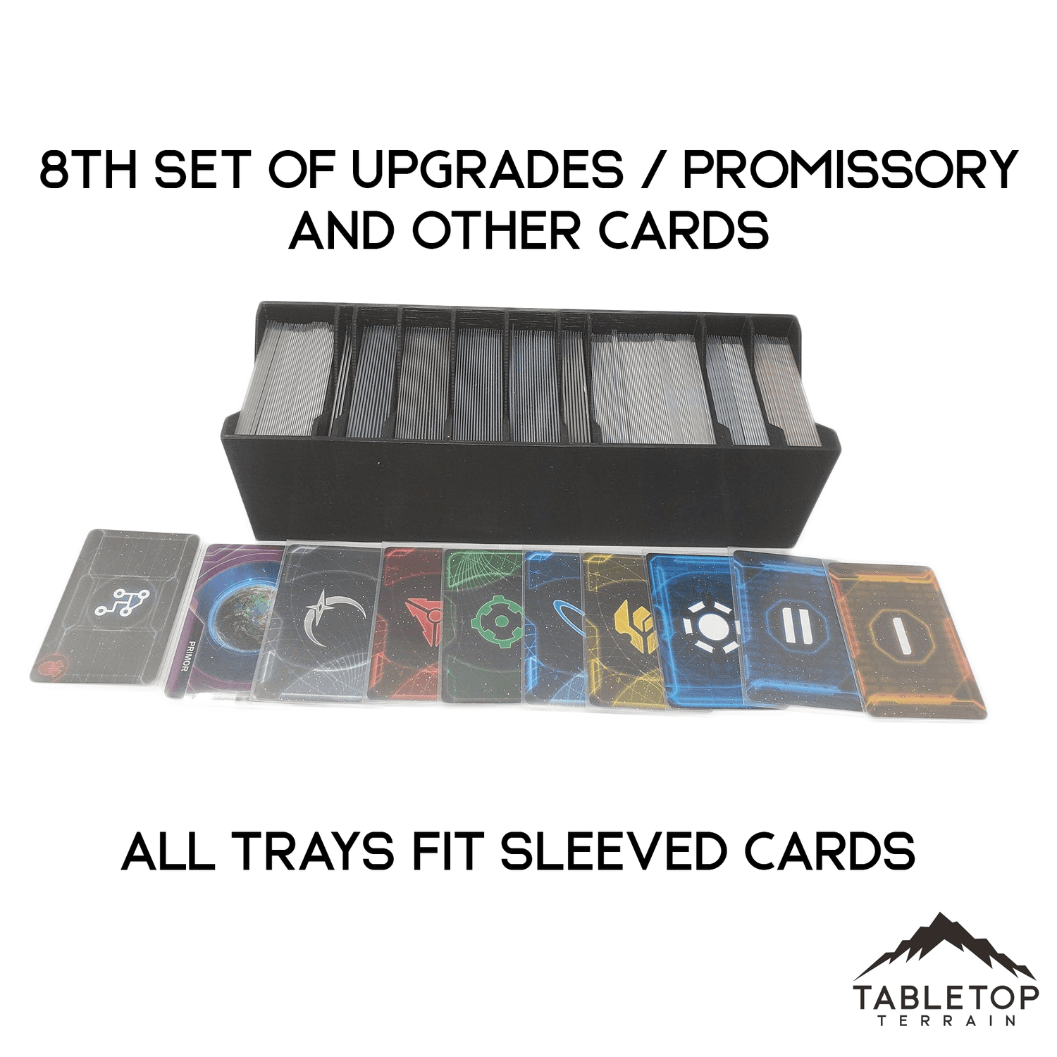 This insert takes all the all of the pieces from the base game and first expansion and stores it in game box without any wasted space, which minimizes the risk of things shifting around inside during transport or storage. 3D printed in multiple colors, to match racial colors as best as possible. Player trays also match color of the pieces they contain. This insert is fully compatible with FFG/GameGenic sleeves. Ships FREE from the US. There are 24 total race boxes and labels such as these (https://imgur.com/a/ZFyQb) can be attached to the outside for easier identification. Any questions, please ask! Does not contain the board game or expansion, organizer/insert only.