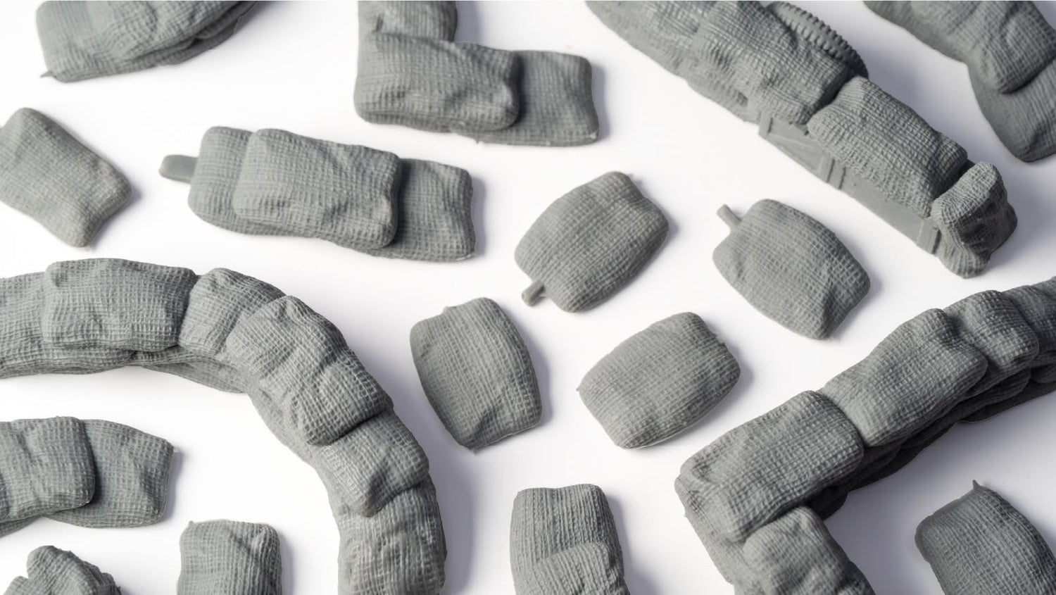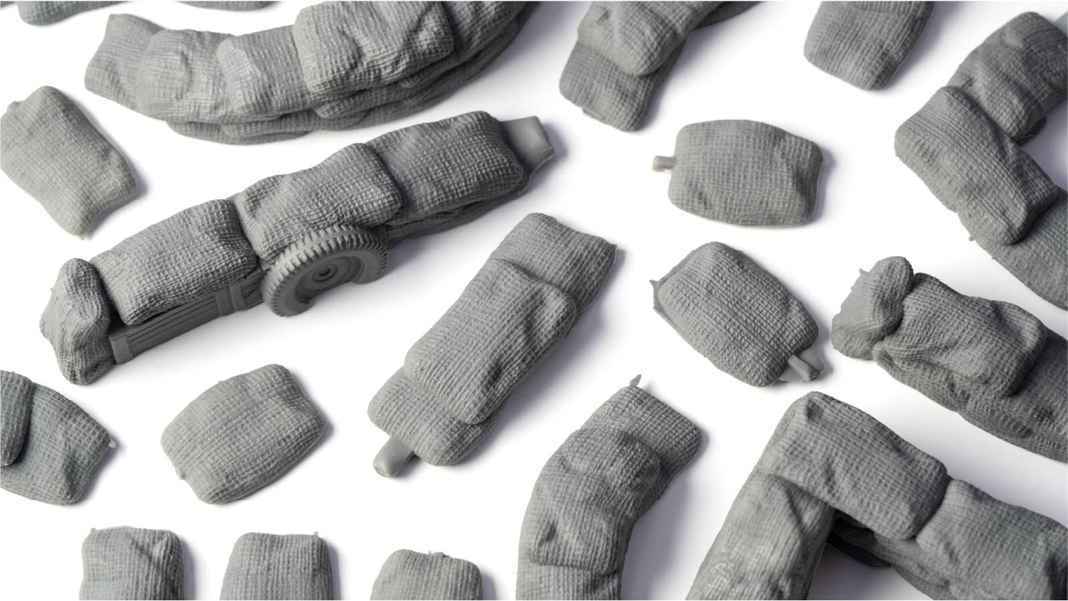 An assorted mix of thermoplastic Sandbag Barricades Basing Bits. All Basing Bits are sold unpainted.