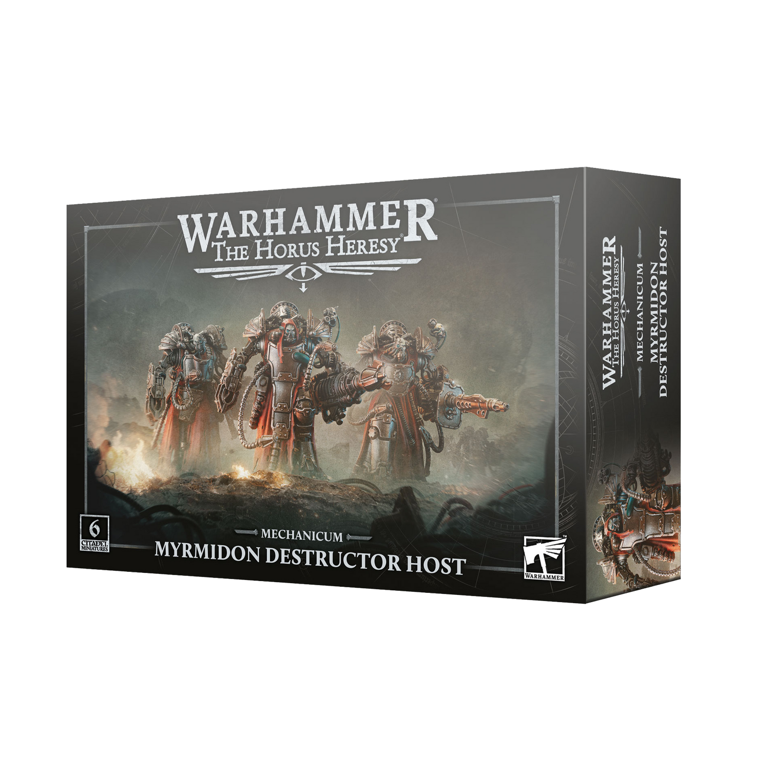 This multipart plastic kit builds six Myrmidon Destructors, elite heavy infantry for your Mechanicum armies in Warhammer: The Horus Heresy. These formidable cybernetic soldiers can be equipped with darkfire cannons for cracking heavy armour or irradiation engines for devastating enemy infantry. When enemies close the distance, they rely on powerful shock chargers to crush their foes in brutal close combat. Tough and heavily armed, this unit provides excellent ranged support while advancing with the rest of your force.
