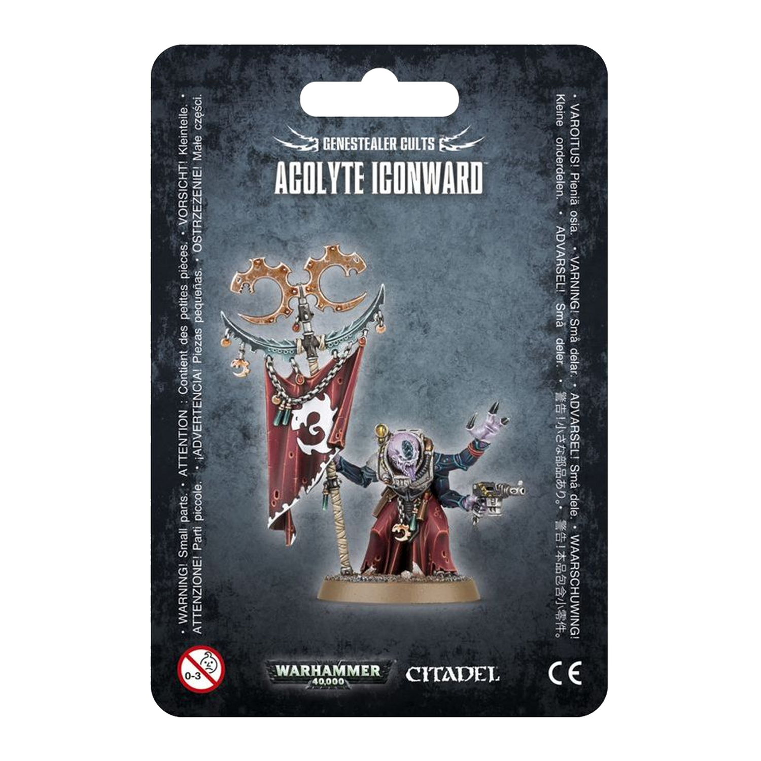 This multi-part plastic kit contains the components necessary to assemble one Acolyte Iconward, armed with an autopistol, blasting charges and rending claws, clutching his cult’s sacred banner. Supplied with a Citadel 32mm Round base.
