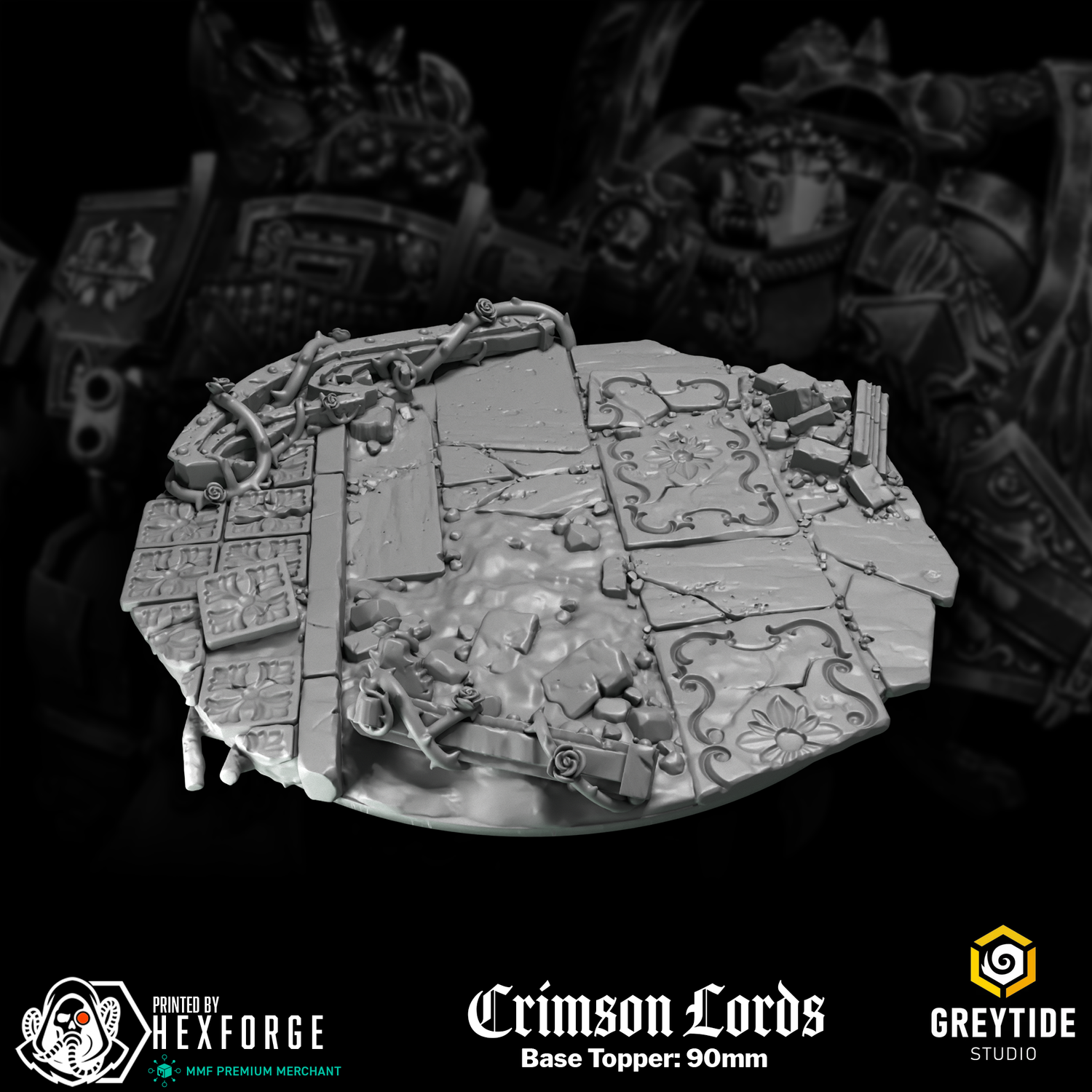 The Base Topper Set is a collection of scenic inserts designed to elevate your Crimson Lords with thematic, battle-worn environments. Sculpted in the grim, baroque style of this blood-forged brotherhood, each topper evokes the aftermath of divine wrath—ideal for turning your army into a cohesive force of narrative and visual impact.
