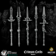The Spears Set delivers a collection of unique, handcrafted spear weapons that balance ornate elegance with battlefield lethality. Each sculpt features ritual engravings, serrated edges, and reinforced hafts, designed to channel the noble savagery that defines the Crimson Lords.
