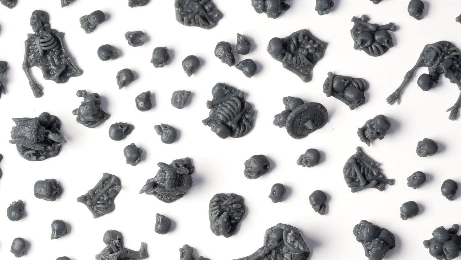 An assorted mix of thermoplastic Skulls & Bones Basing Bits. All Basing Bits are sold unpainted.