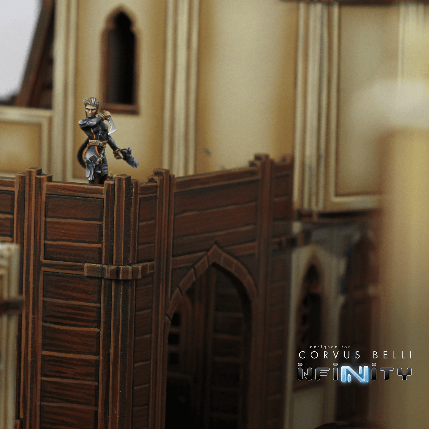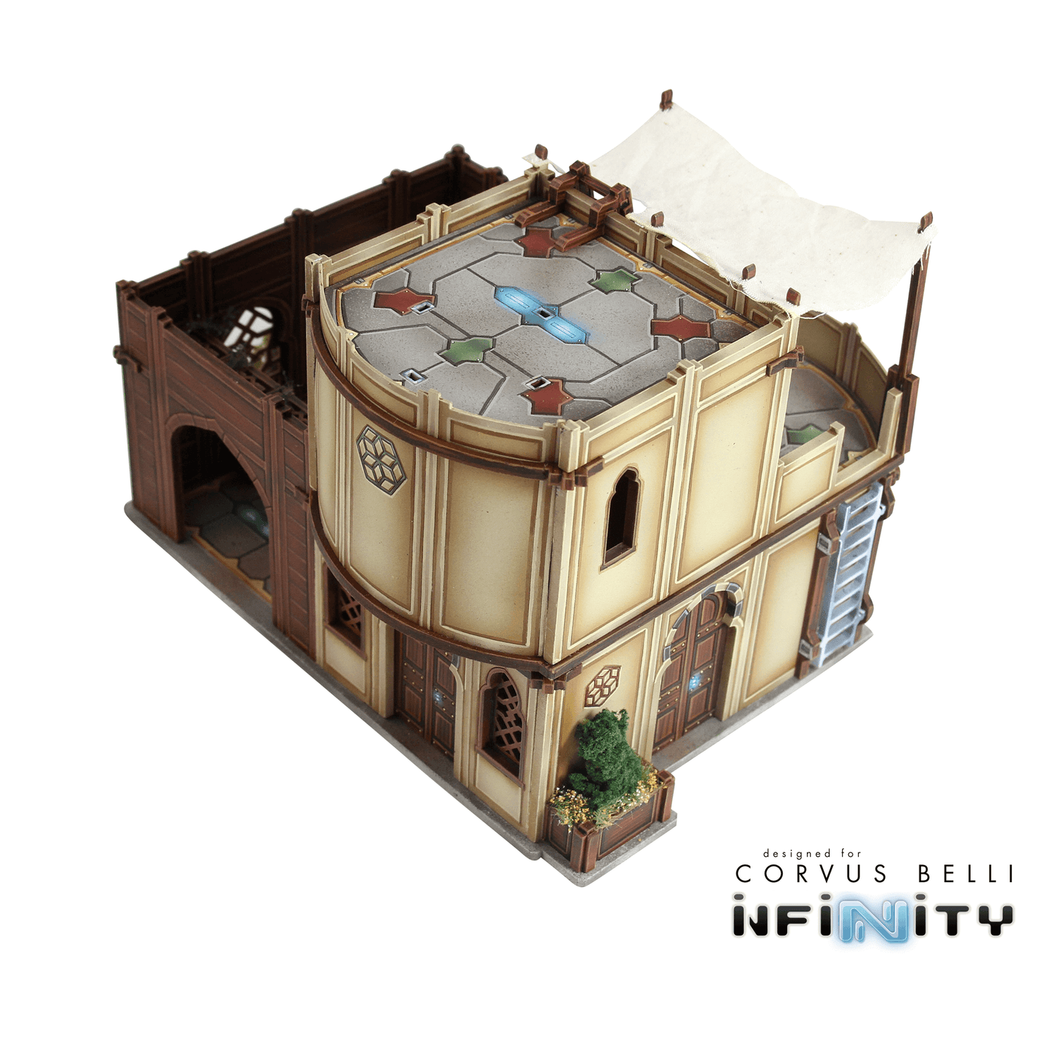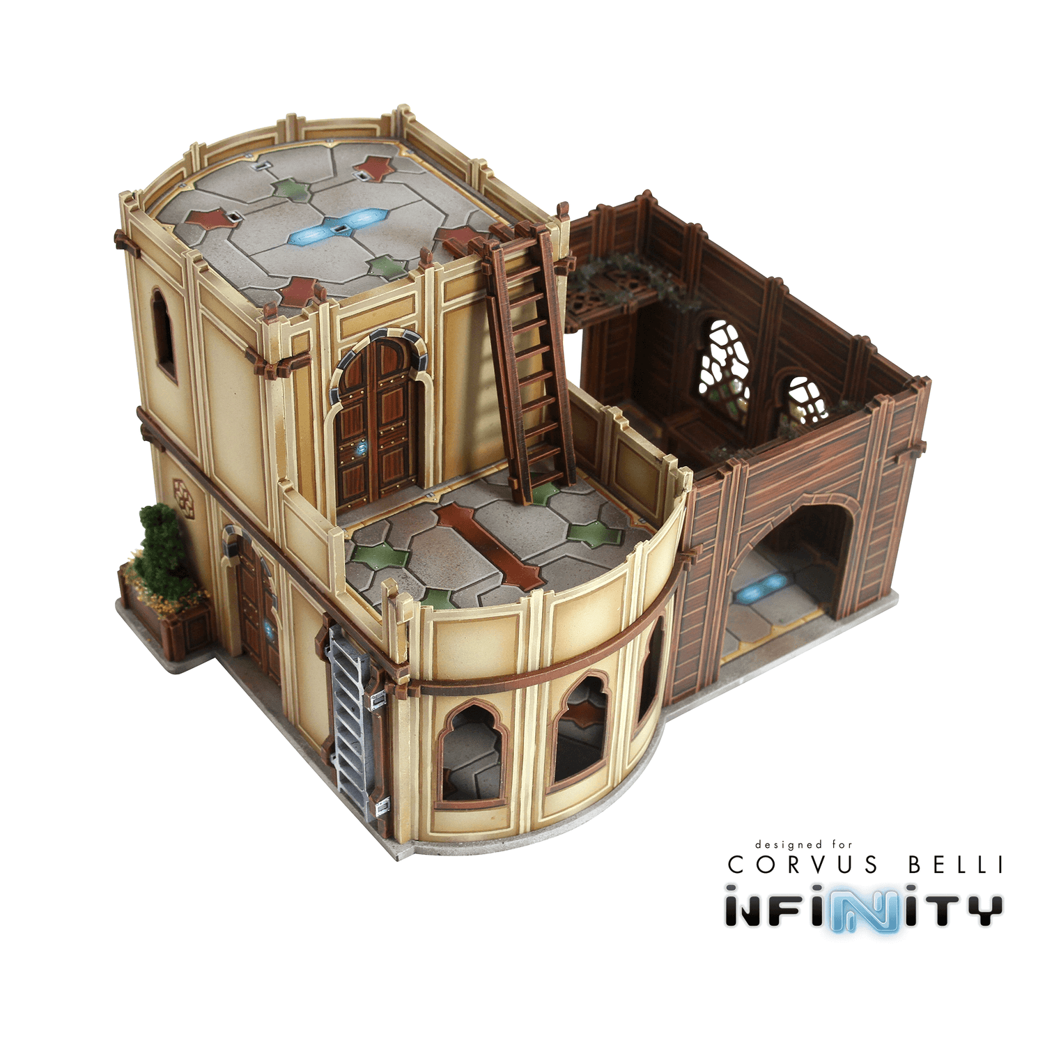 The Alcazaba Residential Building is a medium-sized Haqqislam-themed building with playable interiors for Infinity the Game. When assembled, the Alcazaba Residential Building measures approximately 9" x 7" x 6" tall.