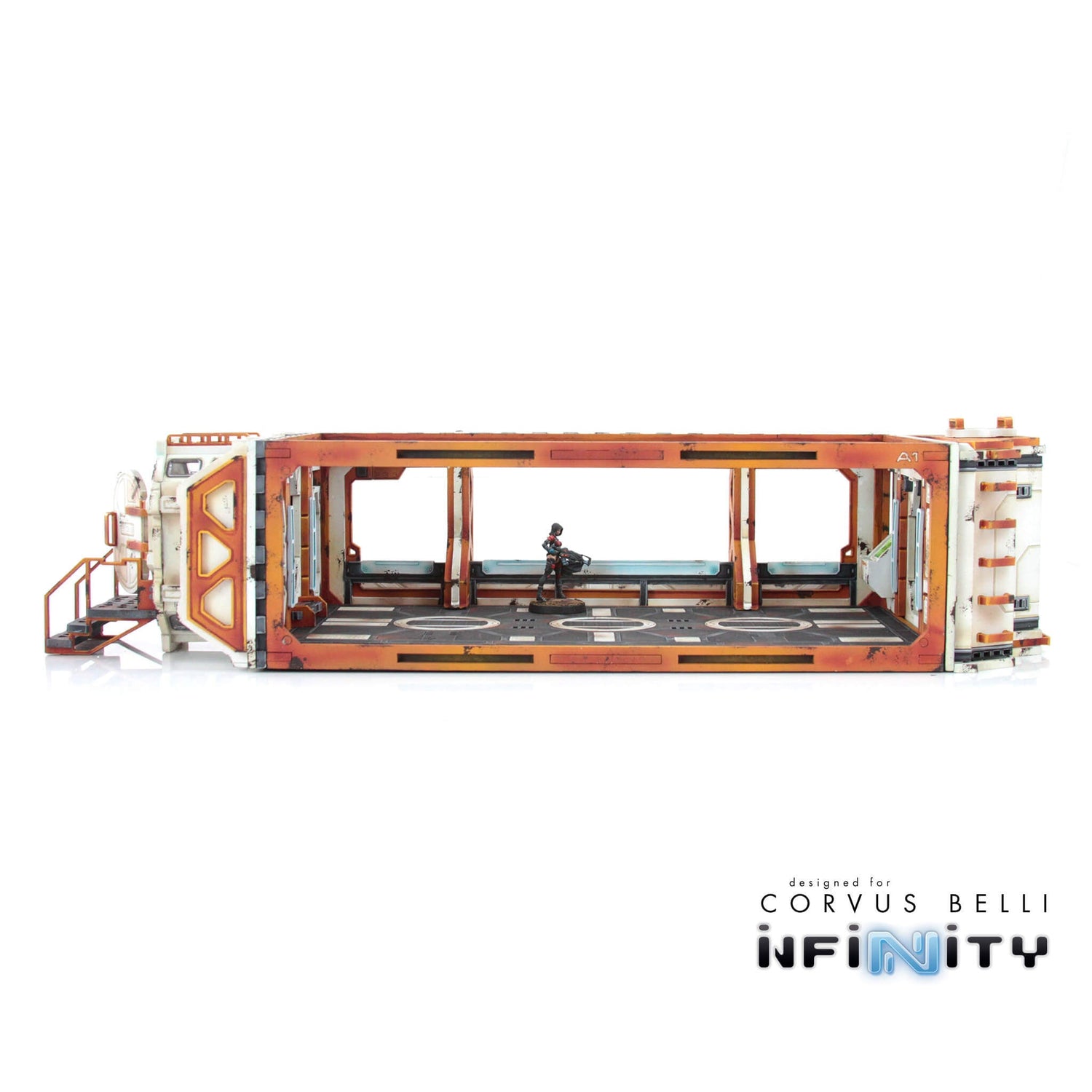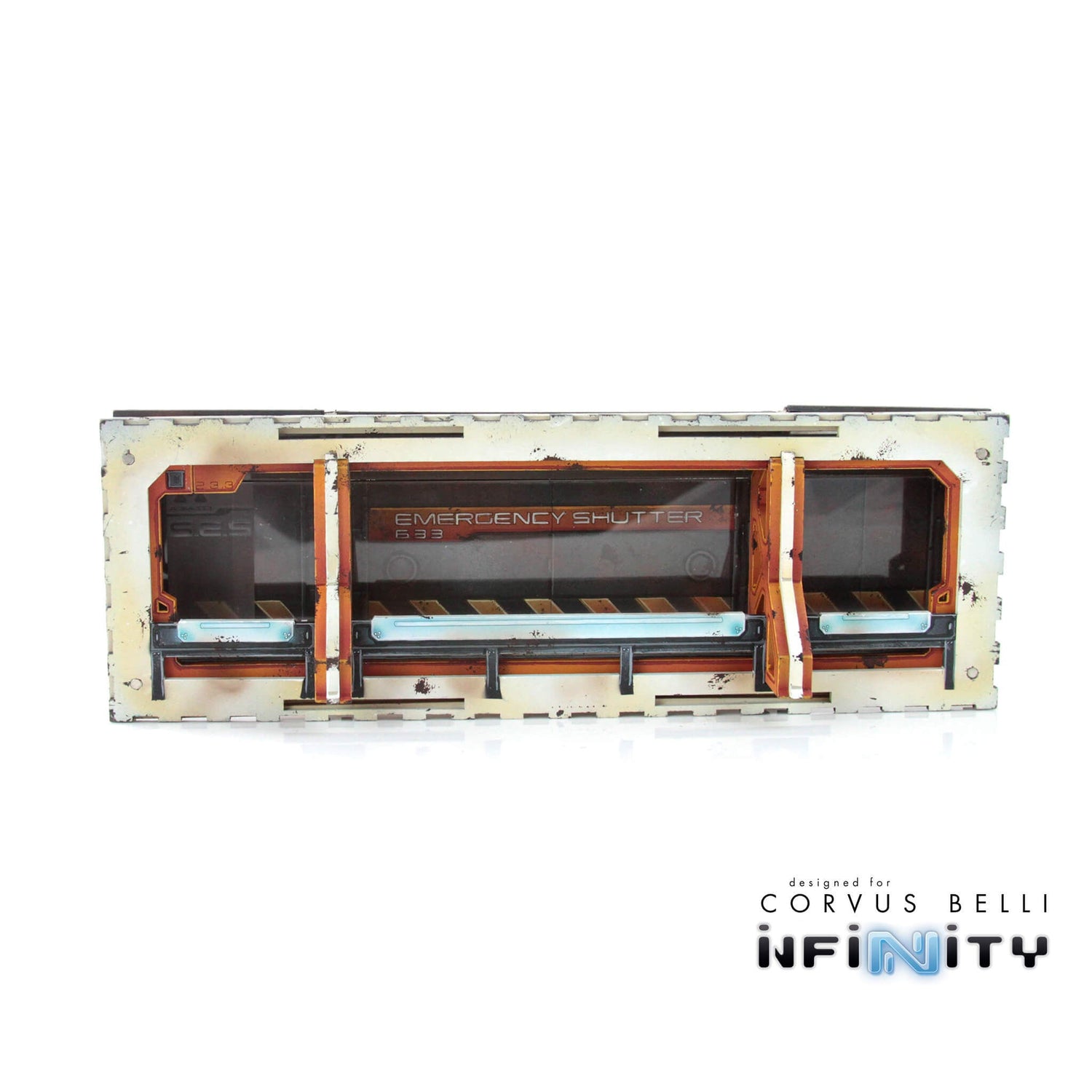 This Product Contains one Cosmica Hallway Facade, designed for Infinity the Game. Compatible with our Cosmica Gamma Frame. It features removable blast doors.