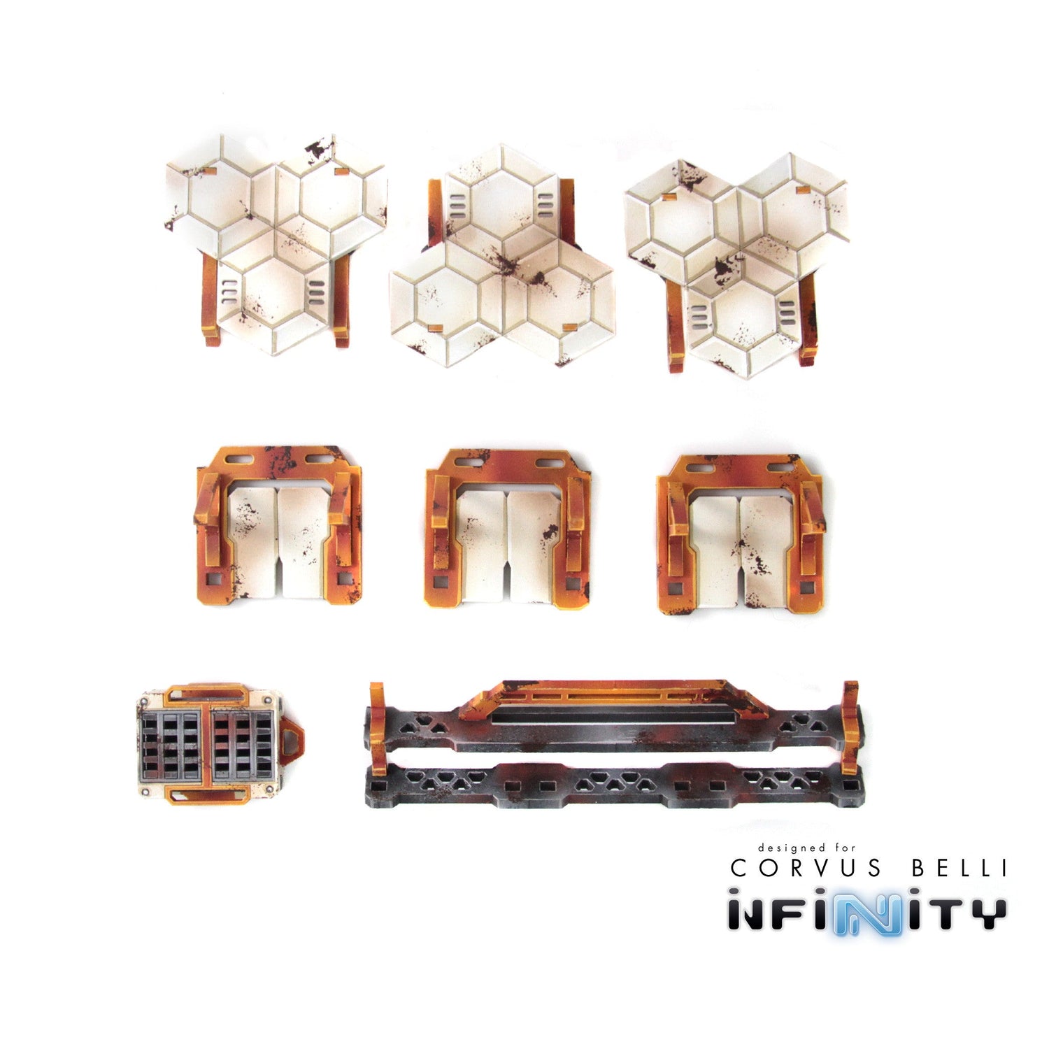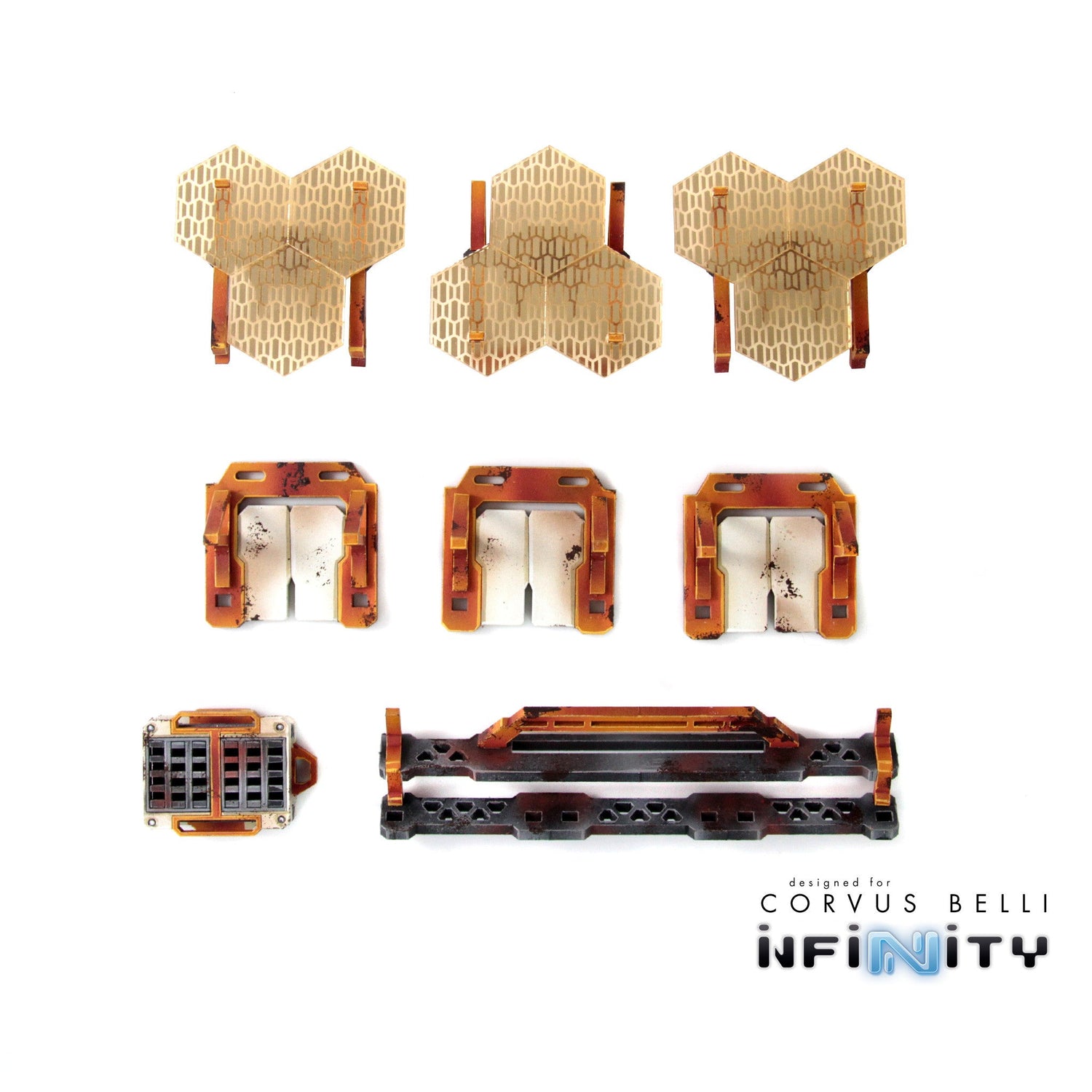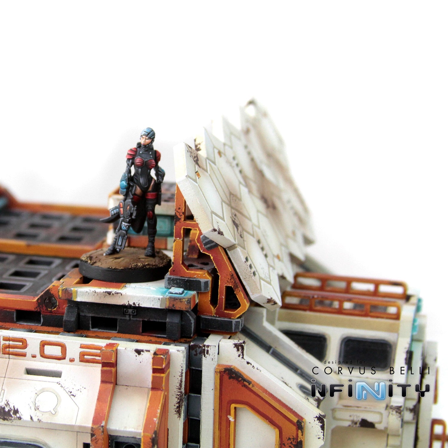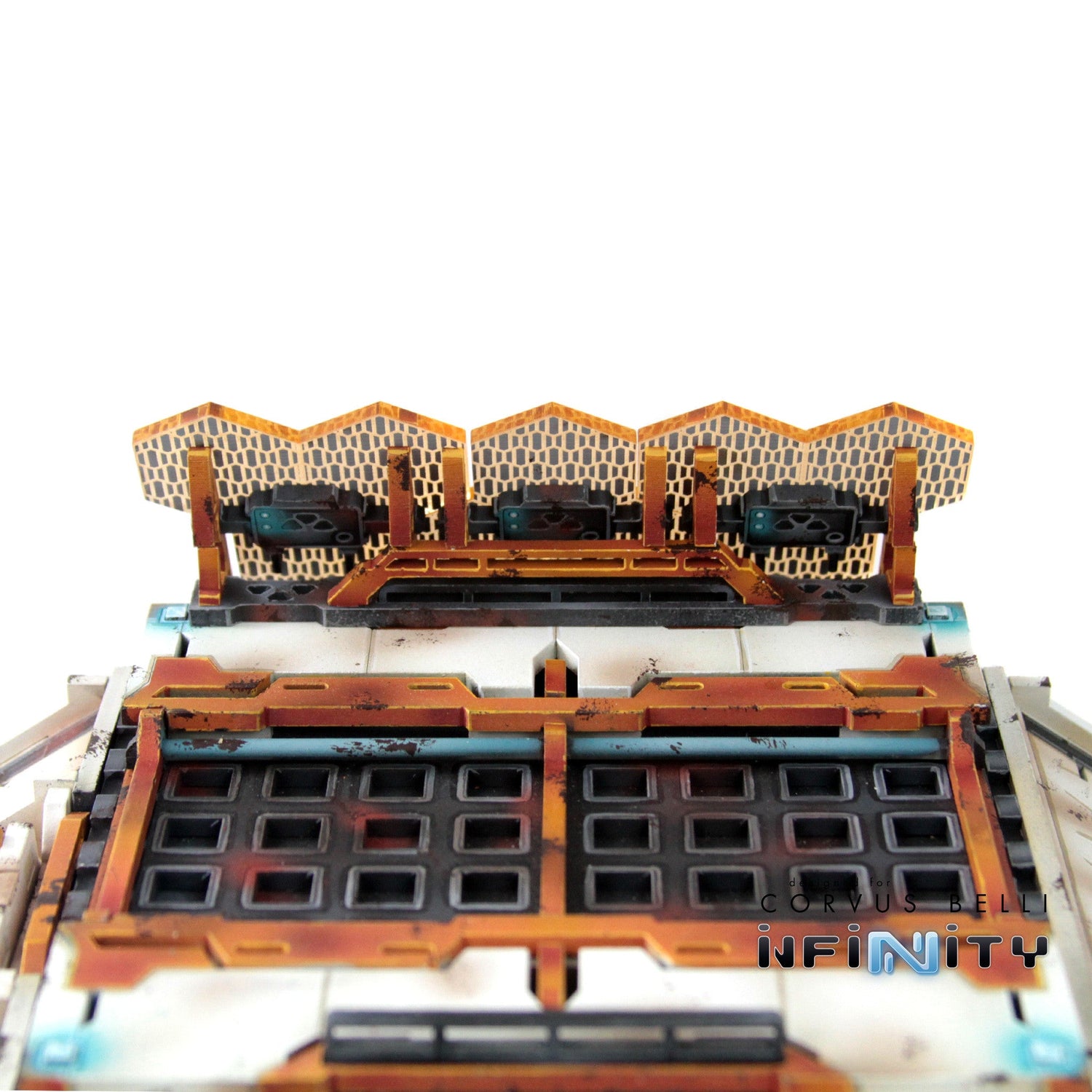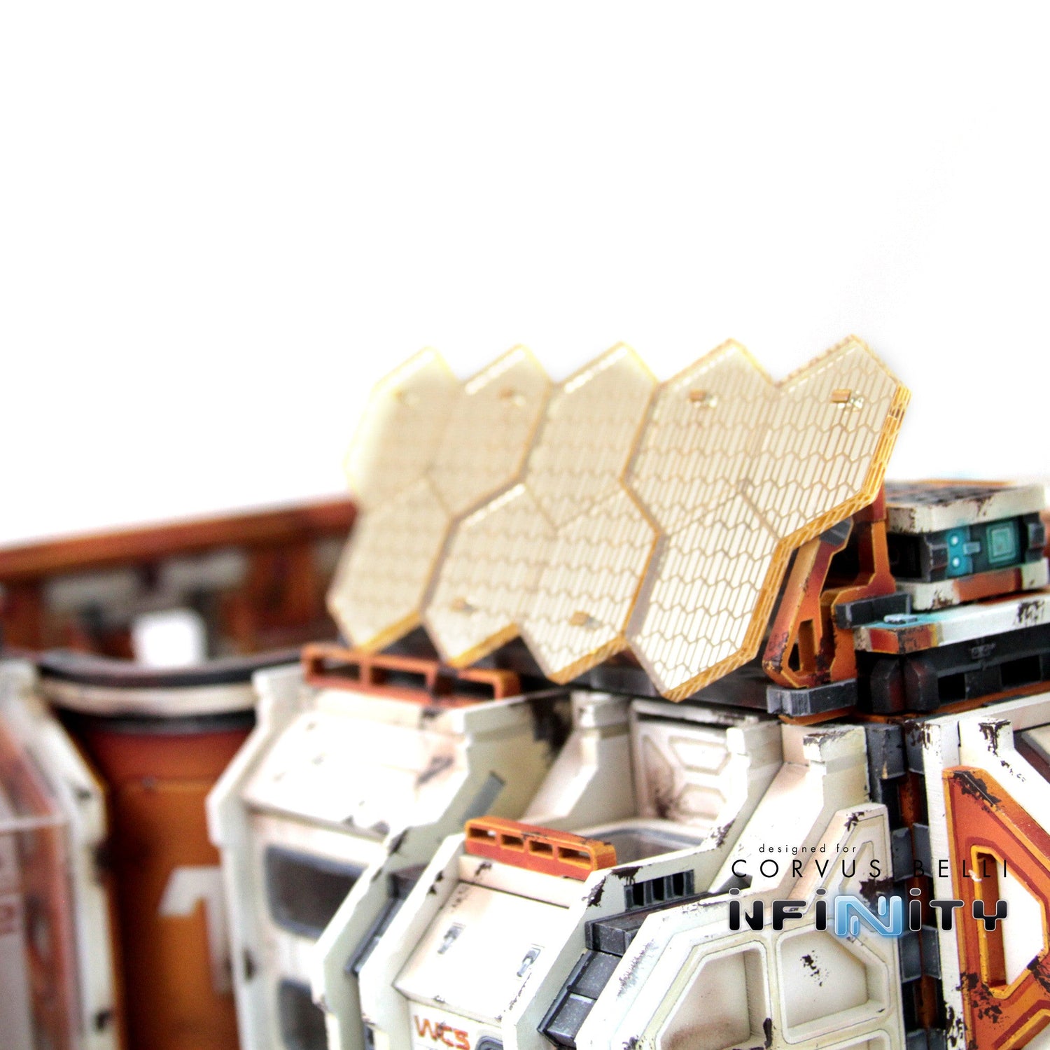 The Solar Array can be free-standing scatter terrain, or can be added to the roof of any of the Cosmica buildings for added detail and cover. Choose between acrylic Solar Panels and MDF Impact Shields.