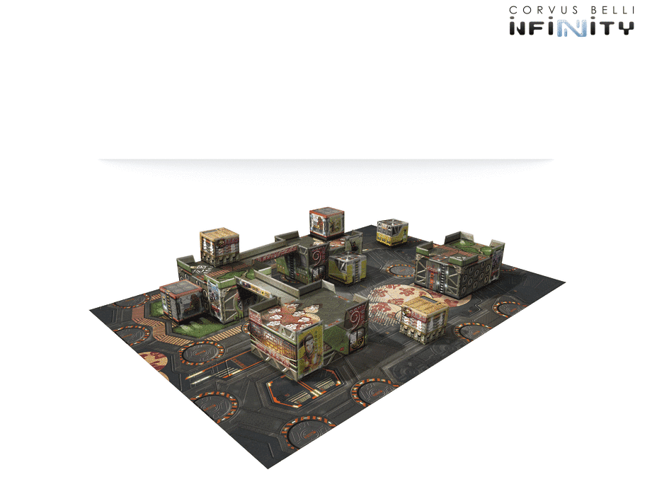 This is the scenery pack included in the Operation: Red Veil Army Pack, now released separately. This set includes ready-to-play cardboard scenery (four buildings, two walkways, and six service pods), and a game mat too.