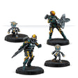 This box includes 4 metal miniatures: 1 Tiangou Hacker, 1 Taingou with Boarding Shotgun and Jammer, and 2 different MadTraps. Acting in a Fireteam or alone with their MadTraps, these Zero-G specialists will cause confusion amongst enemy troopers thanks to their holodevices.