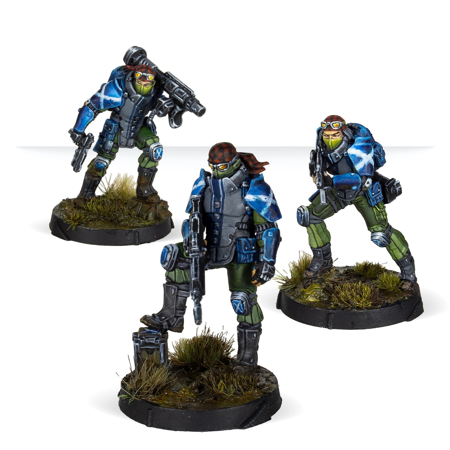 This box includes 3 miniatures: 1 Scots Guard with Spitfire, 1 Scots Guard with Submachine Gun and 1 Scots Guard with Missile Launcher. With this box you will be able to create a Fireteam of Scots Guards to expand their firepower at any range and sweep away your enemies.