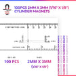 100pcs 2mm x 3mm (Approximately 1/16" x 1/8") Cylinder Magnets
