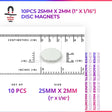 10pcs 25mm x 2mm (Approximately 1" x 1/16") Disc Magnets