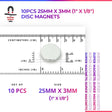 10pcs 25mm x 3mm (Approximately 1" x 1/8") Disc Magnets