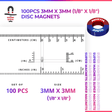 Engineering-Special - Diametrically Magnetized - 100pcs 3mm x 3mm (Approximately 1/8" x 1/8") Disc Magnets