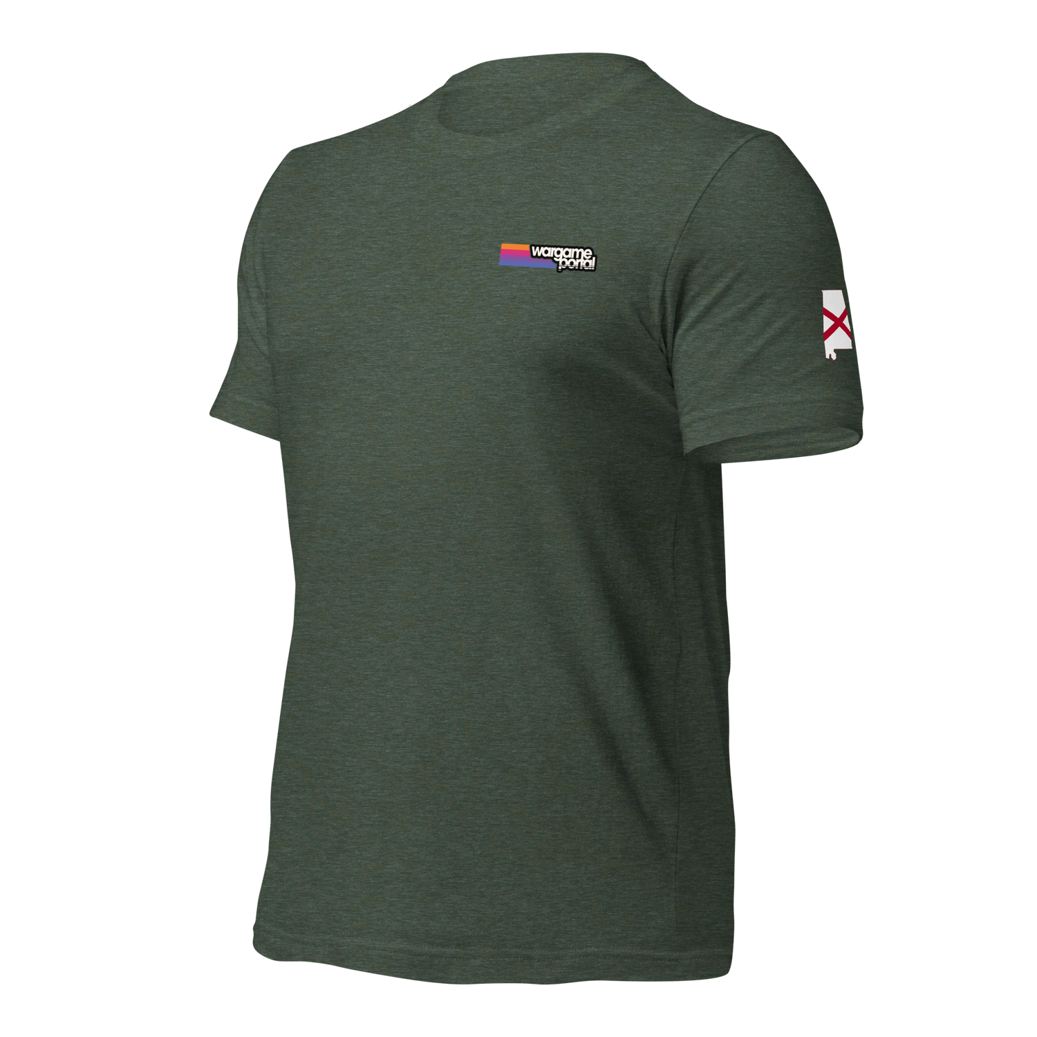 The front features the Wargame Portal logo, clean and minimal. A subtle silhouette of the state of Alabama is placed on the sleeve, grounding the design in local pride and regional heritage. On the back, the Alabama Wildlife Federation (AWF) logo stands as a clear statement of support for wildlife conservation and natural land preservation across the state.