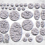 Created by Txarli Factory and meticulously printed by Printology Labs, the 'Basaltic' base set immerses your miniatures in a rugged landscape of hexagonal basalt formations. These natural volcanic patterns, with their geometric precision and sharp edges, evoke a sense of ancient power and geological wonder. Perfect for fantasy or sci-fi settings, these bases bring a striking, natural hexagonal aesthetic to your tabletop.