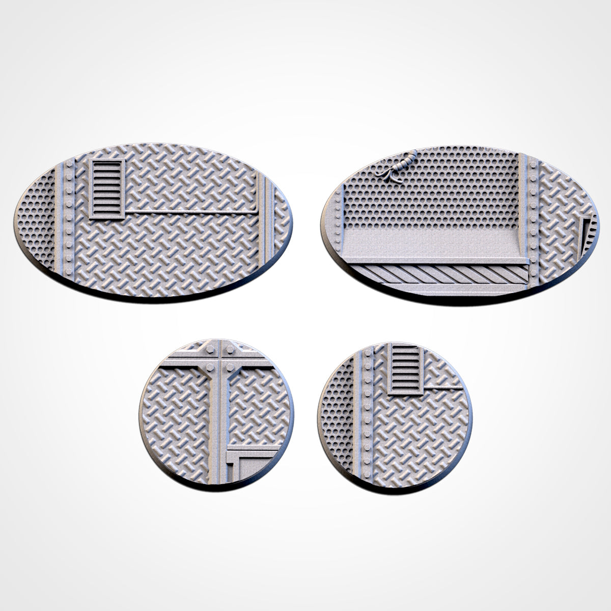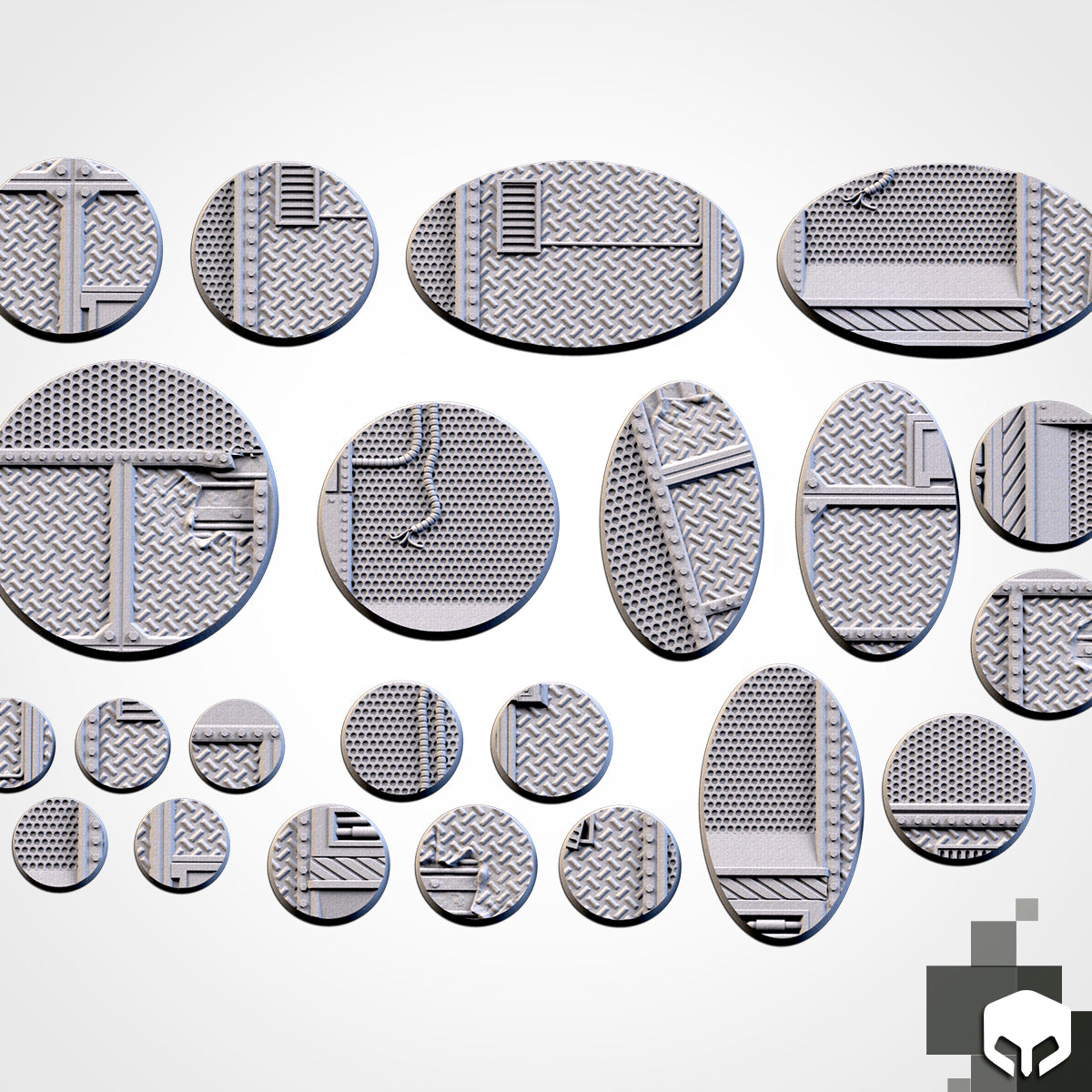 Crafted by Txarli Factory and brought to life by Printology Labs, the 'Factory' base set plunges your miniatures into the gritty heart of an industrial complex. These bases feature detailed steel flooring, scattered wires, and heavy plating—evoking the feel of machine bays, assembly lines, and war-worn production halls. Ideal for urban sci-fi settings or dystopian warzones, they add a mechanical edge to any army.