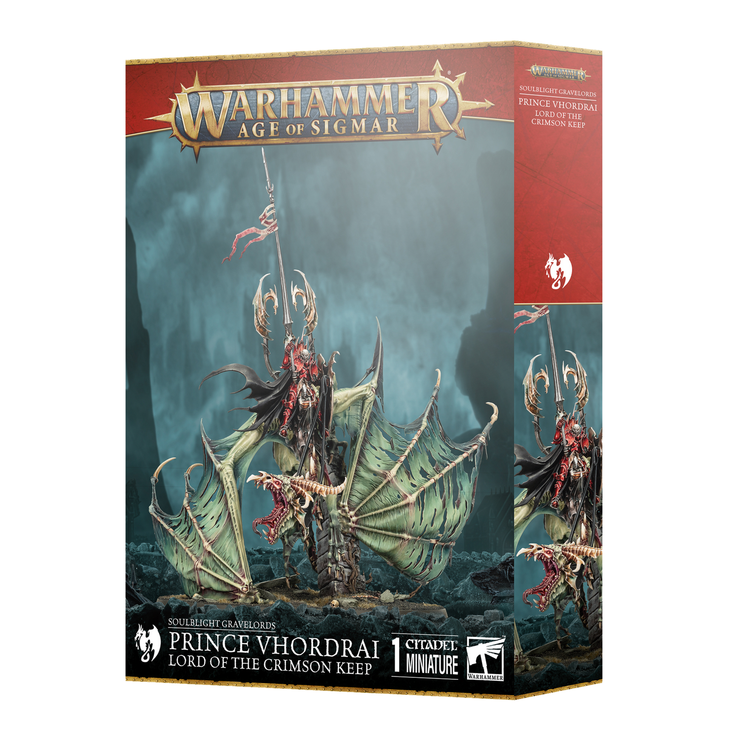 This multipart plastic kit builds Prince Vhordrai, a dread vampire to command your Soulblight Gravelords armies in games of Warhammer Age of Sigmar. Armed with the legendary Bloodlance, he is a worthy match for even the strongest opponents, and mounted on his cursed Draconith, Shordemaire, he is capable of keeping up with the faster moving elements of your army, inspiring them to fight even harder in his presence.