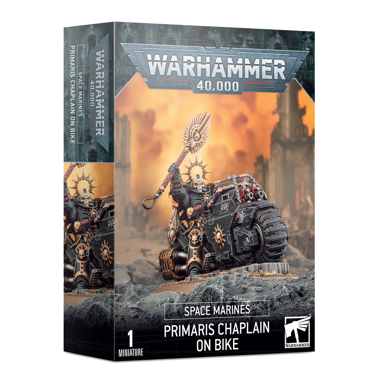 This kit builds one Primaris Chaplain on bike. It is supplied with helmeted and unhelmeted heads. It comes in 33 plastic components and includes a 90mm oval base and a Primaris Character Transfer Sheet.